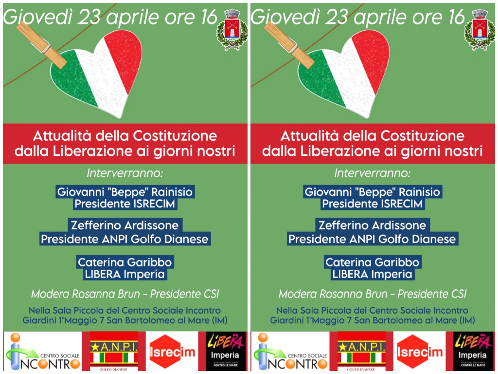 In prossimità dell’ottantunesimo anniversario della Liberazione dal nazifascismo, il Centro Sociale Incontro APS organizza un importante momento di riflessione collettiva dedicato alla nostra Carta Costituzionale. L’appuntamento