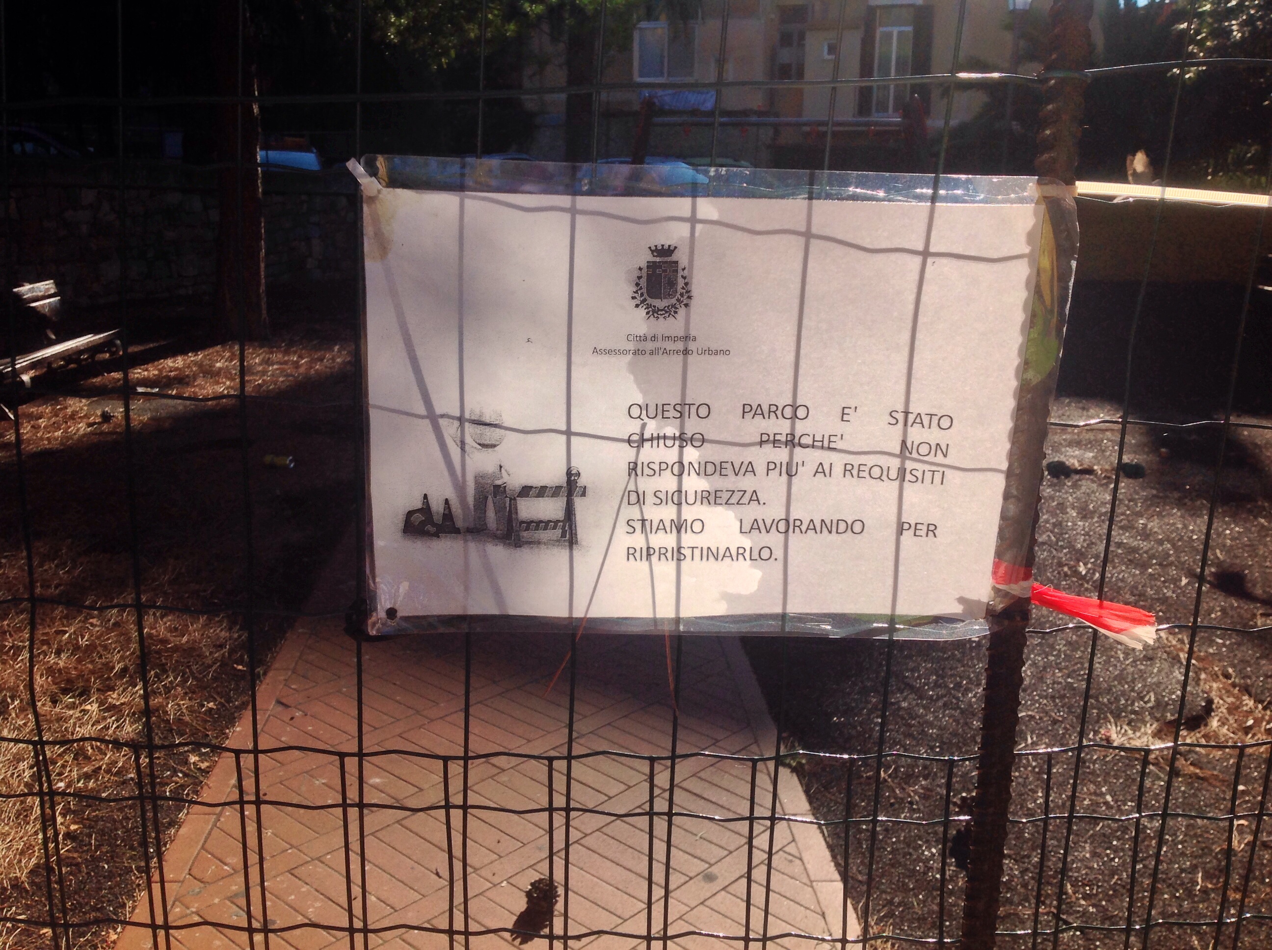 Si allungano i tempi necessari per vedere nuovamente accessibile il parco giochi di Largo Ghiglia. Ogni giorno di più aumenta il rischio che il parco resti chiuso anche durante le vacanze natalizie. A distanza di un mese mezzo dalla chiusura per motivi di sicurezza, infatti, il Comune non ha ancora provveduto a formalizzare l’incarico di posizionamento dei nuovi giochi. Contattata da ImperiaPost, l’assessore all’arredo Urbano Maria Teresa Parodi spiega: “È in corso l’iter di conferma dell’affidamento lavori. Ho sollecitato tutti gli uffici competenti affinché il parco sia fruibile entro la fine del mese di dicembre, per lo meno durante le vacanze natalizie. Il mese scorso abbiamo destinato alle aree giochi 35 mila euro con una variazione di bilancio. Confidiamo in una risoluzione in tempi brevi del problema”.