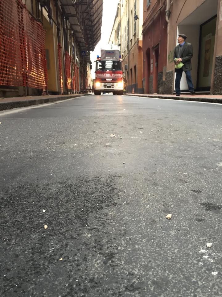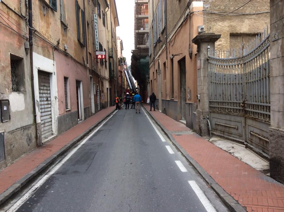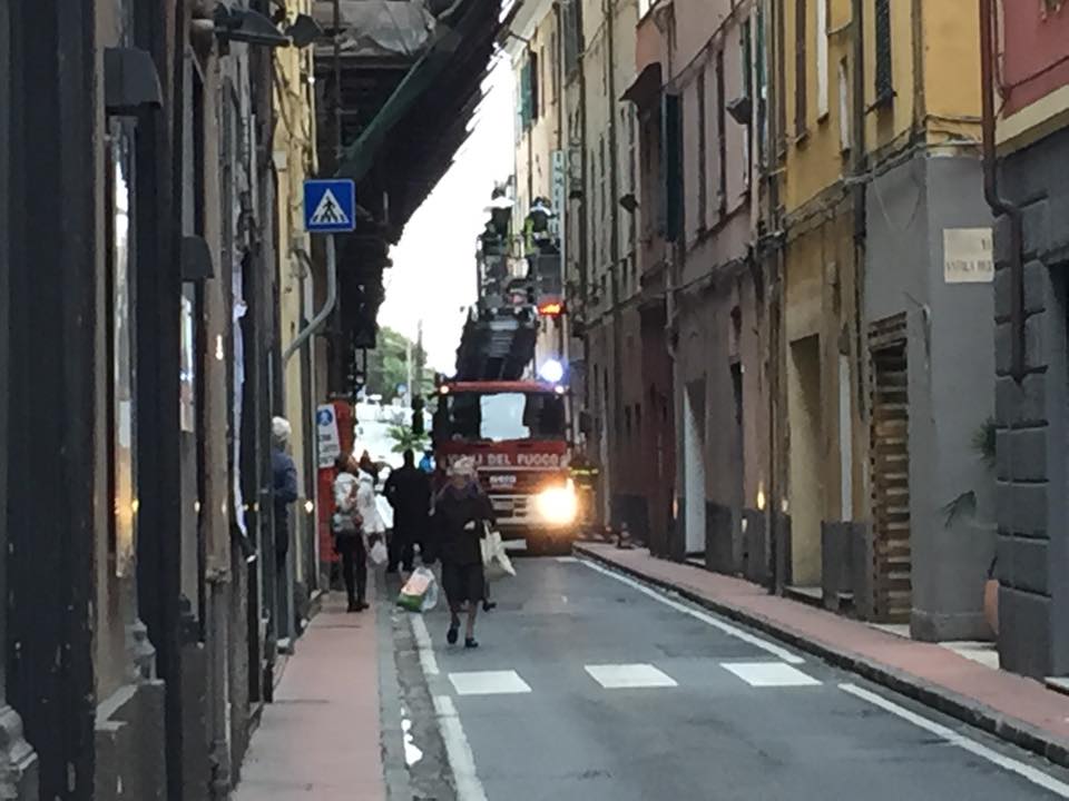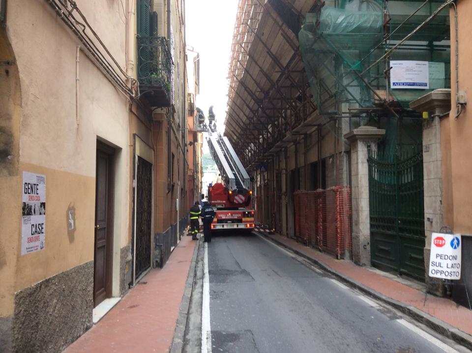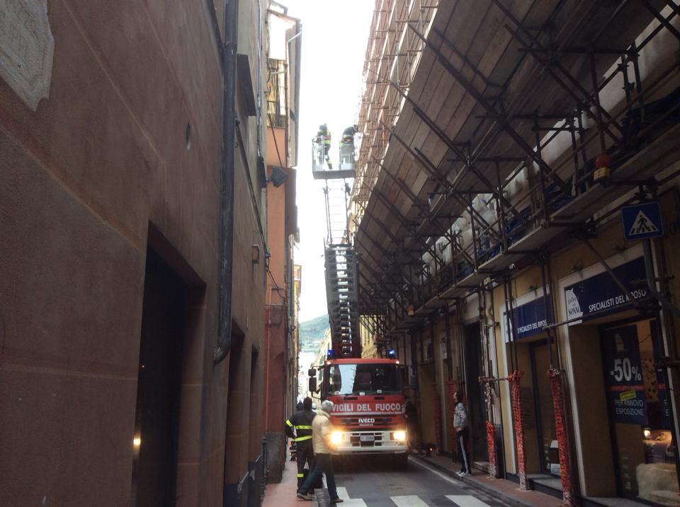 IMPERIA. A causa del forte vento che ha colpito la città questa notte si stanno verificando alcune situazioni di disagio. Ad esempio in Via Amendola a causa di un cornicione pericolante sono dovuti intervenire i Vigili del Fuoco con un autoscala per rimettere la zona in sicurezza.
