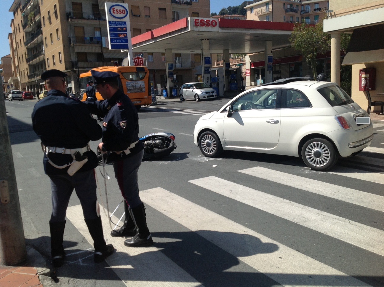 Imperia – Erano da poco passate le 12.30 quando, in viale Matteotti, un’auto, una Fiat 500 con targa tedesca, ha toccato uno scooter su quale viaggiava un giovane facendolo cadere a terra. Non è ancora chiara la dinamica del sinistro ma secondo una prima ricostruzione sembra che lo scooter fosse in fase di sorpasso e in quel momento l’auto, guidata da una donna di circa 35 anni, abbia deciso di svoltare a sinistra.