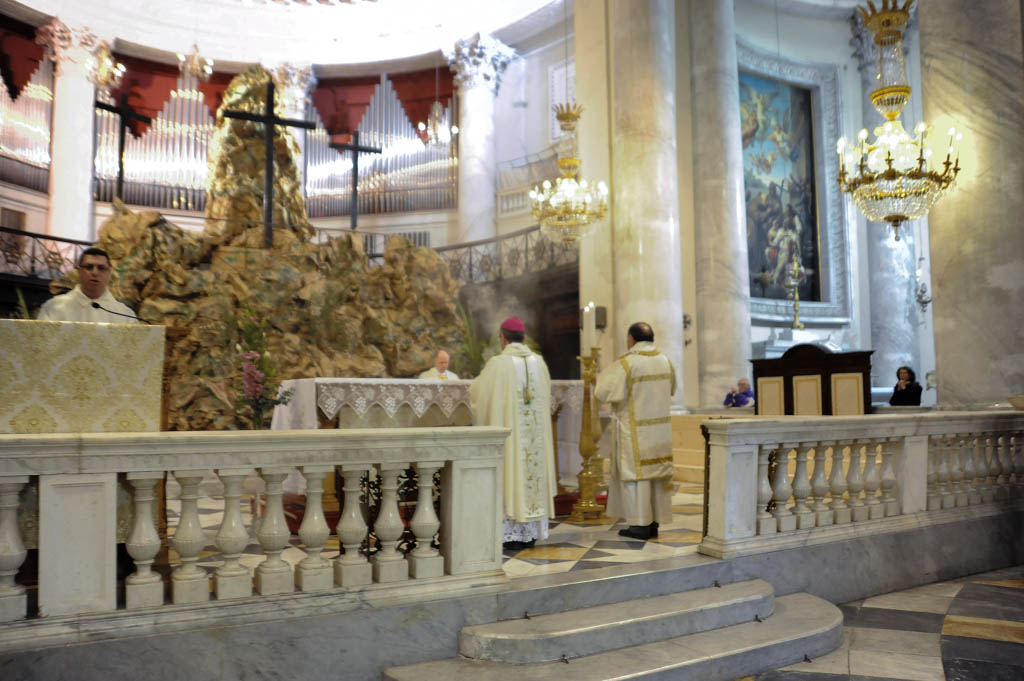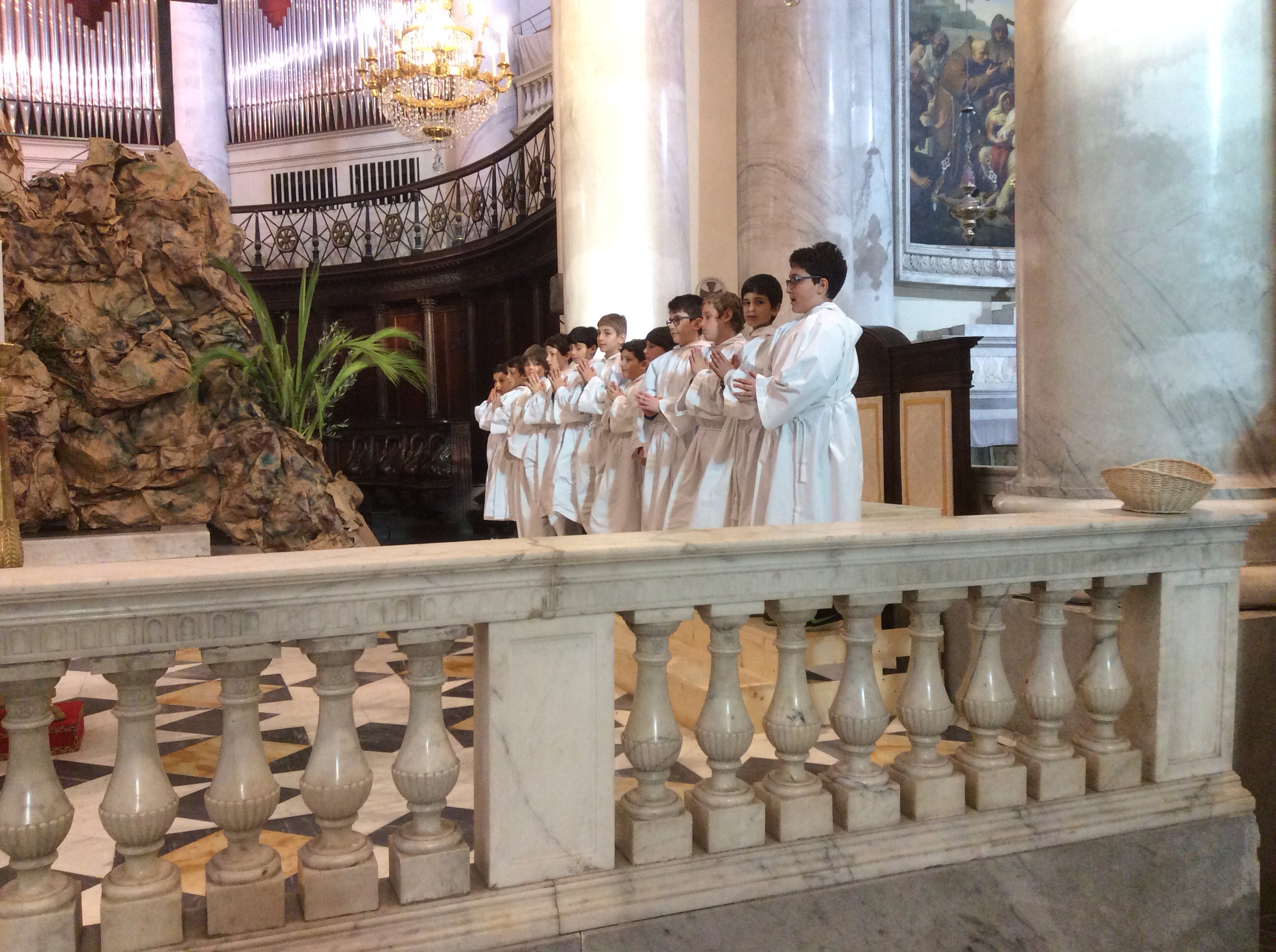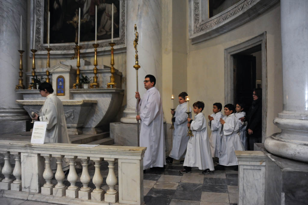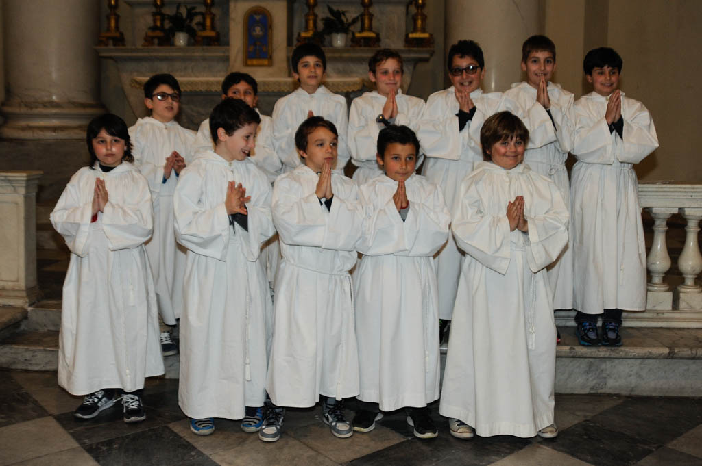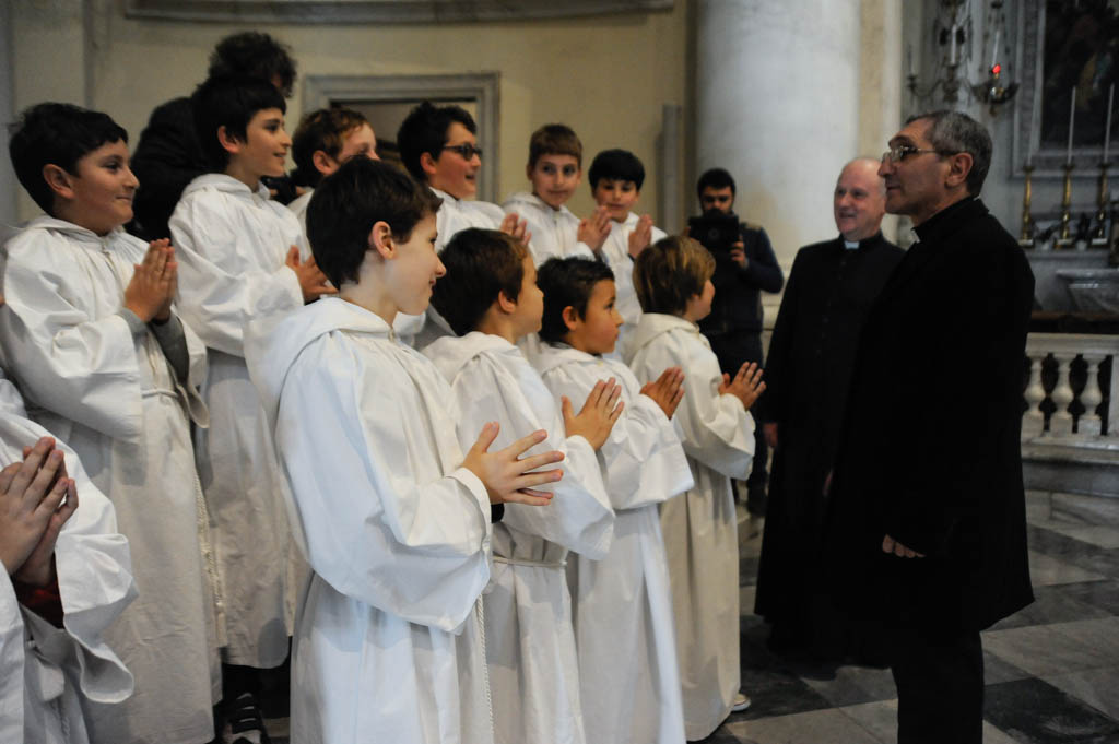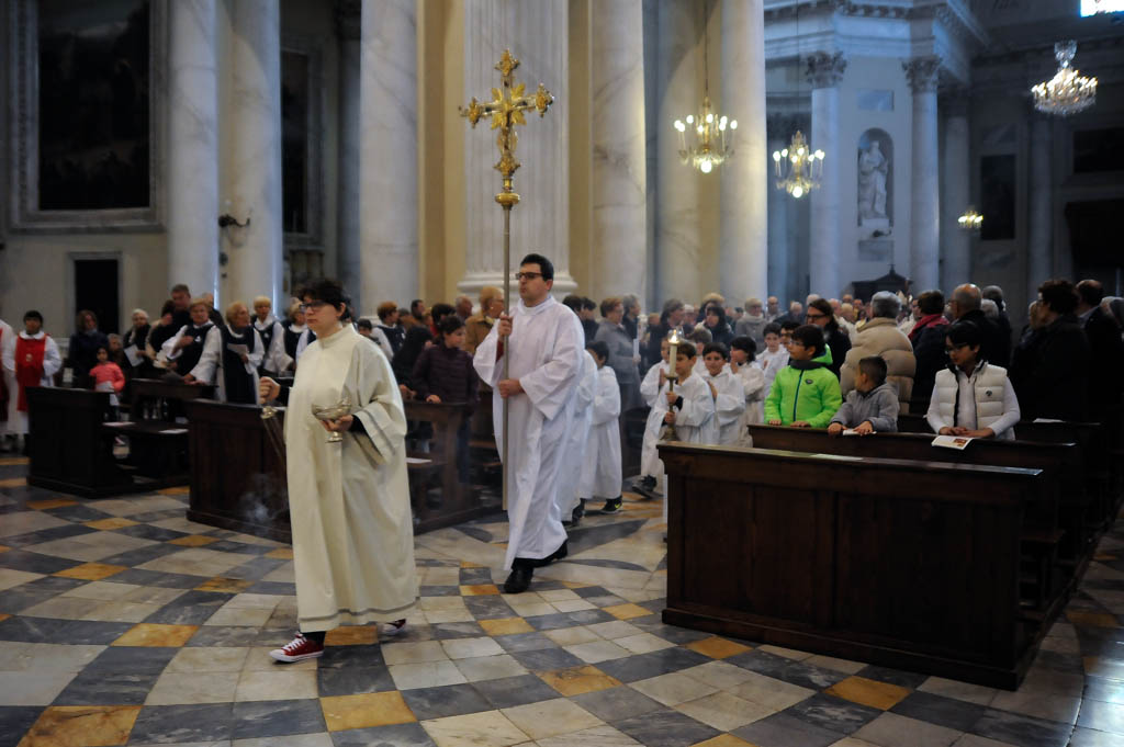 Al termine dell’omelia il Vescovo Monsignor Borghetti ha lavato i piedi ai giovani fedeli che si preparano a ricevere la Prima Comunione. Un momento molto sentito, di profonda commozione per tutti i fedeli presenti.
