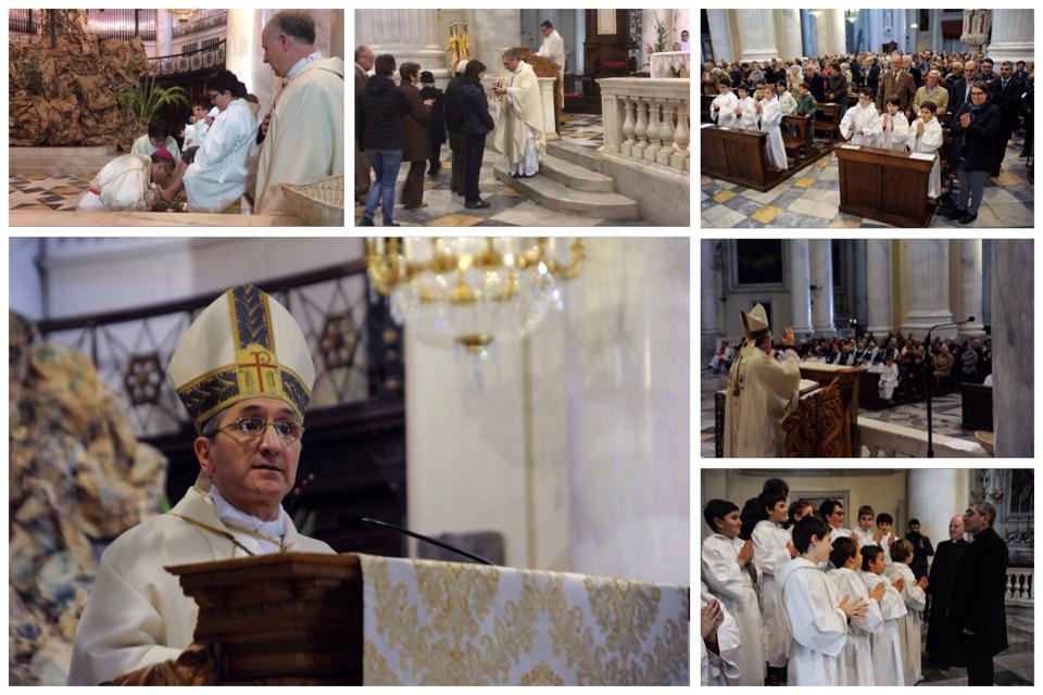 IL VESCOVO LAVA I PIEDI A DODICI PICCOLI FEDELI PRONTI PER LA PRIMA COMUNIONE