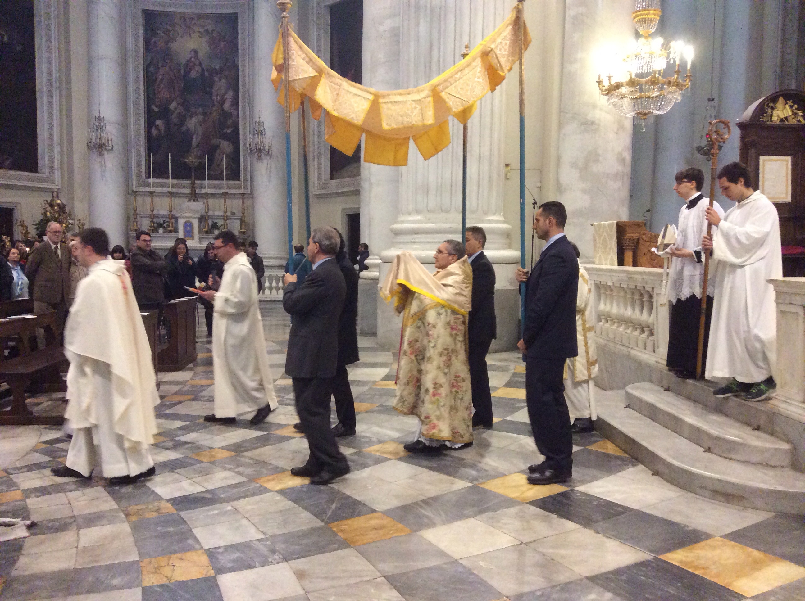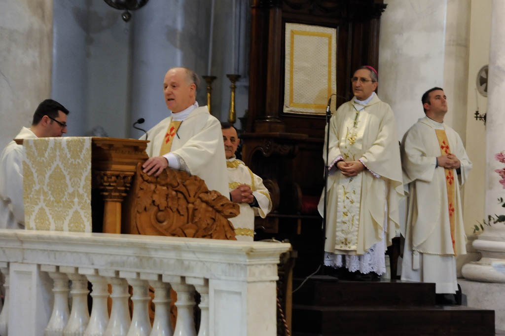 “Siamo contenti di dare il benvenuto nella nostra cattedrale al Vescovo Borghetti – ha detto Don Ivo – Siamo contenti che il primo incontro avvenga in un giorno così significativo come il Giovedì Santo. Abbiamo già imparato ad apprezzare il suo parlare sincero, franco, reale. Speriamo di essere anche noi nei suoi confronti altrettanto franchi e reali. Siamo certi che saprà valorizzare al meglio la nostra Chiesa. Avrà ricevuto qualche notizia pesante sulla nostra comunità, ma come si dice, il Diavolo non è poi così brutto come lo dipingono. Un grazie per aver accettato l’incarico conferitole da Papa Francesco“.