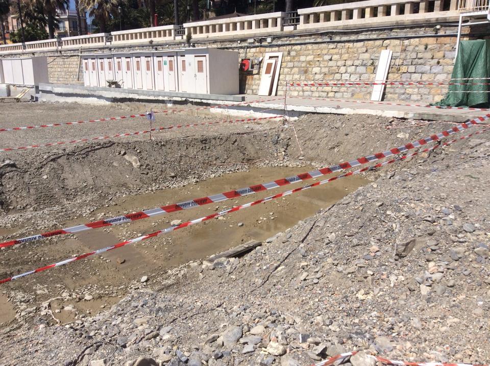 Nell`area in questione è stata realizzata una buca, intervento propedeutico all’inizio dei lavori di realizzazione di una piscina a bordo spiaggia. Intervento senza le necessarie autorizzazioni secondo la Capitaneria di Porto che ieri mattina ha eseguito un sopralluogo e questa mattina, dopo aver ascoltato il titolare della concessione, Domenico Borla, ha provveduto al sequestro delimitando l’area con i tradizionali nastri biancorossi.