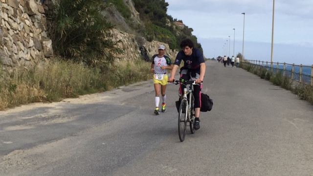IMPERIA – Tornano sulle strade cittadine gli ultramaratoneti che partecipano alla seconda edizione della “UltraMilano-Sanremo”, 280 km di corsa no-stop dal capoluogo lombardo fino alla città dei fiori. Alle 15, come da pronostico ha varcato il confine imperiese, passando dall’incompiuta, il campione portoghese Joao Oliveira che nel corso della gara ha staccato di parecchi km il secondo. ImperiaPost è andato a salutarlo. L’anno scorso la gara era stata vinta dal taggiasco, da tempo trasferitosi negli States Michele Graglia, in 31 ore e 49 minuti .