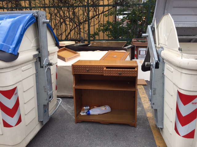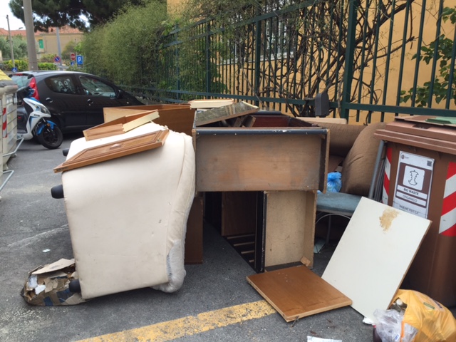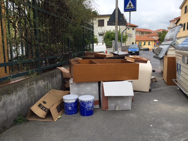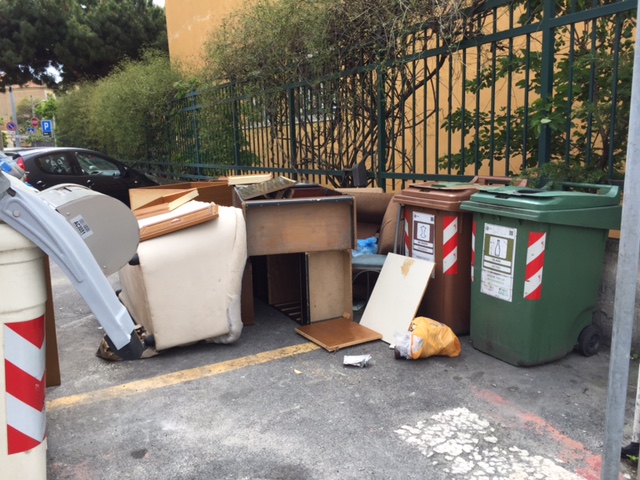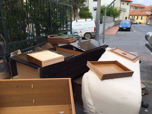 Imperia – “A.A.A. cambio salotto in corso, regalo divano, poltrona e mobilio vario a chi se lo viene a prendere. Astenersi perditempo”. Qualcuno in zona via Agnesi, sta rinnovando il salotto di casa purtroppo, però, a farne le spese è la collettività. È infatti questo lo spettacolo di inciviltà acuta che si può ammirare da due giorni dietro all’isola ecologica di via Agnesi attaccata all’asilo di Largo Ghiglia.