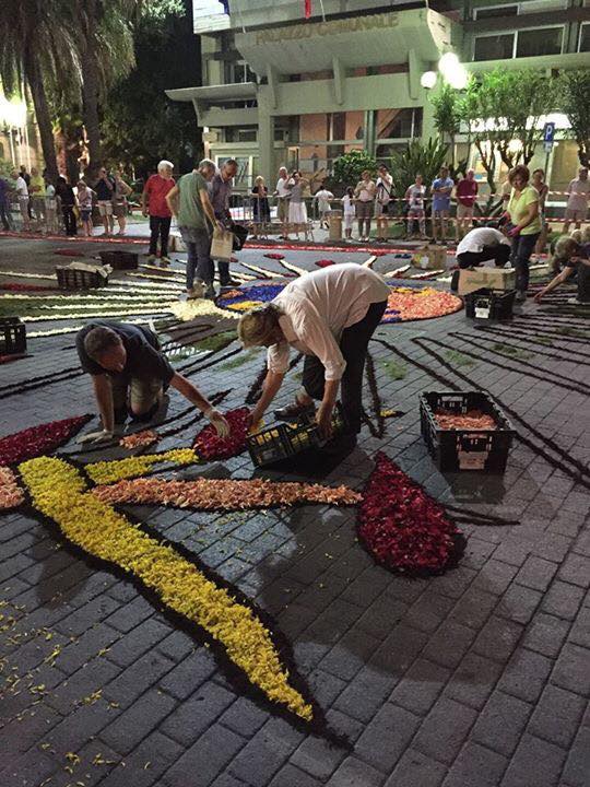 Tutto pronto a Diano Marina, così come a Imperia, per la tradizionale Infiorata del Corpus Domini. Nella giornata di ieri, fino a tarda sera, sono proseguiti senza sosta i preparativi. I disegni e la direzione artistica sono a cura del Geom. Agostino Ardissone.