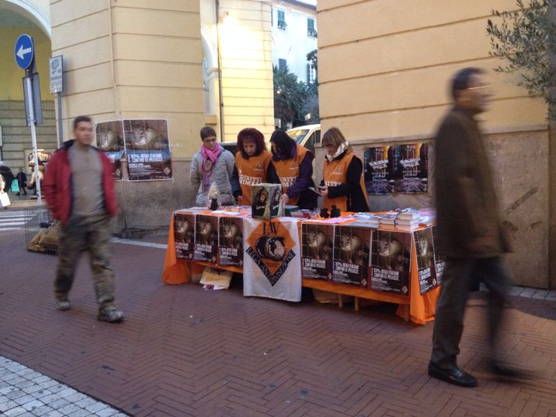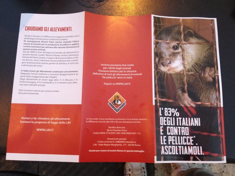 “L’83% degli italiani è contro le pellicce. Ascoltiamoli“. Recita così il volantino che, da questa mattina, i volontari della LAV – Lega Anti Vivisezione – stanno distribuendo agli imperiesi in via San Giovanni a Oneglia e prosegue con frasi molto dure all’interno fra cui alcune domande che mirano a far riflettere.