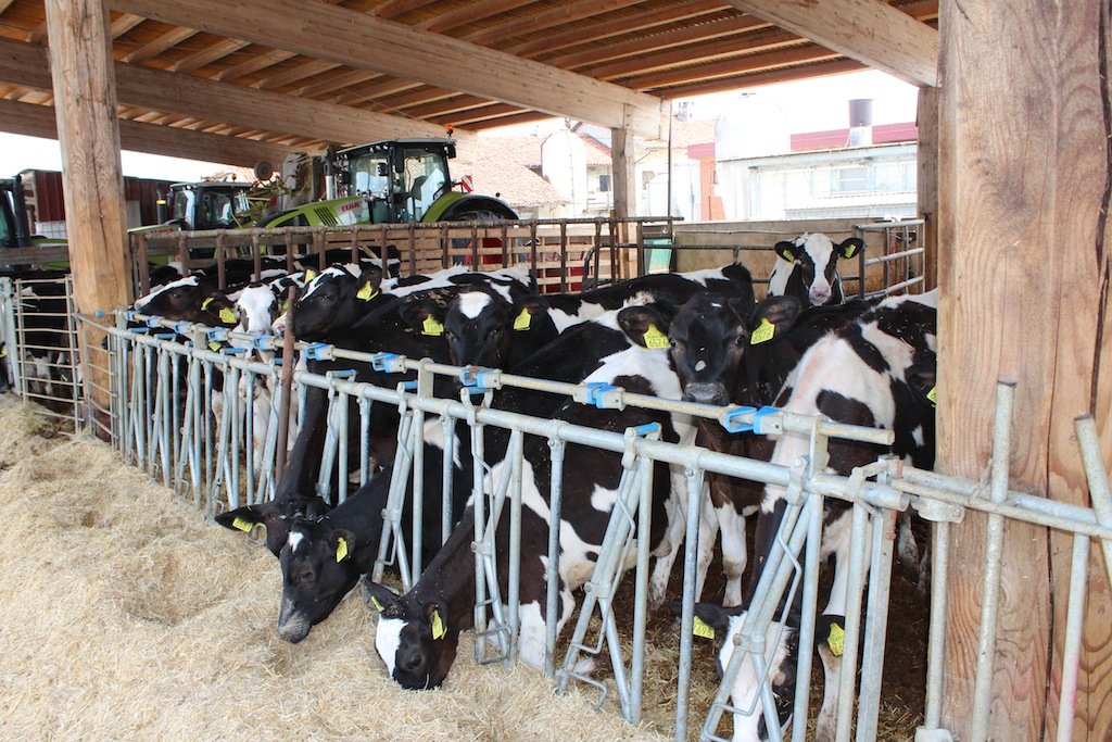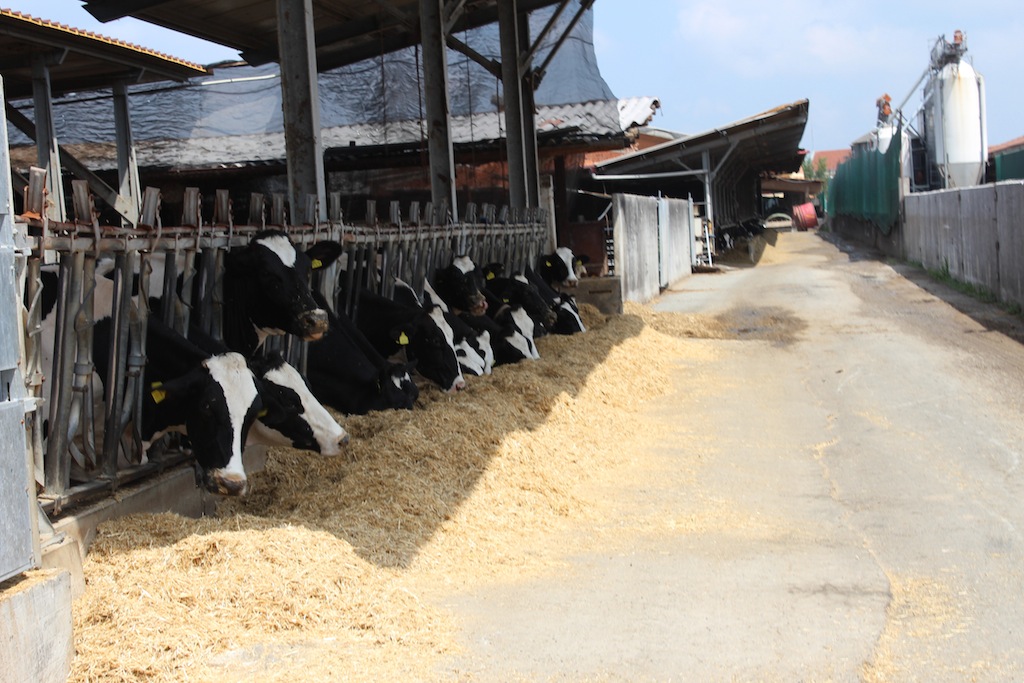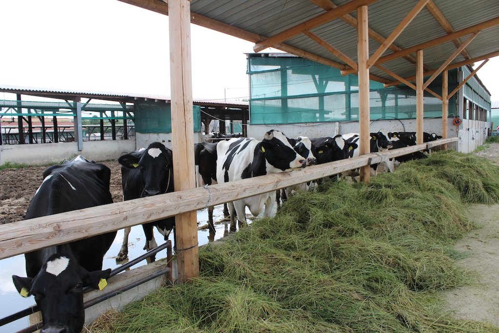“Sono 25 anni che facciamo latte – racconta uno dei fratelli “Grasso” – La nostra produzione va totalmente alla “Latte Alberti”. Alle nostre manze diamo erba fresca durante l’estate e poi mais, soia, erba medica, fieno, paglia, insilato loietto, pannocchie di mais e vitamine, tutta roba naturale. Ogni animale mangia circa 40 kg di questi alimenti al giorno e la sua produzione è di circa 29-30 litri quotidiani, anche se dipende dai periodi.