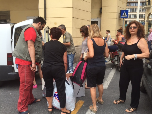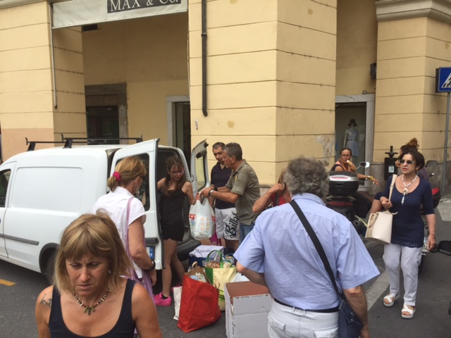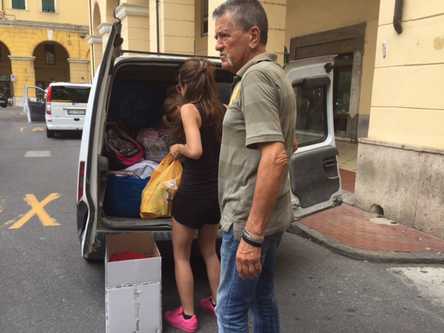 “La cosa – ha detto Walter – è nata dal fatto che siamo andati a Ventimiglia e abbiamo visto dei ragazzi, delle mamme, dei bambini che avevano bisogno di aiuto. Abbiamo sperato che la cittadinanza rispondesse in senso positivo, eravamo leggermente sfiduciati all’inizio per alcune asserzioni fatte, però abbiamo avuto un riscontro favoloso da come si può vedere in pochi minuti abbiamo già riempito un furgone”.