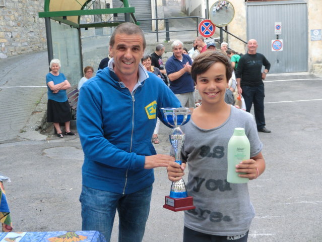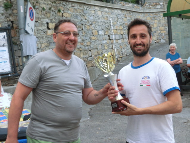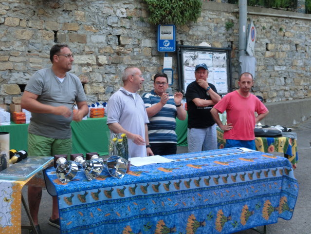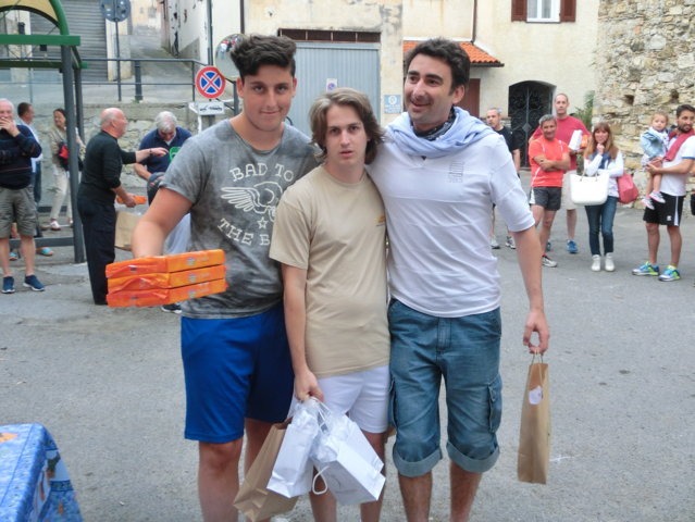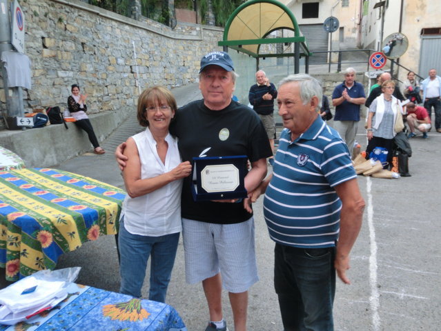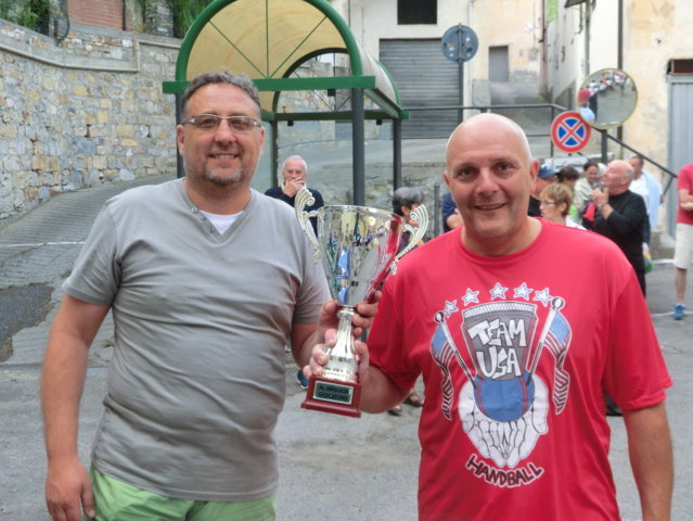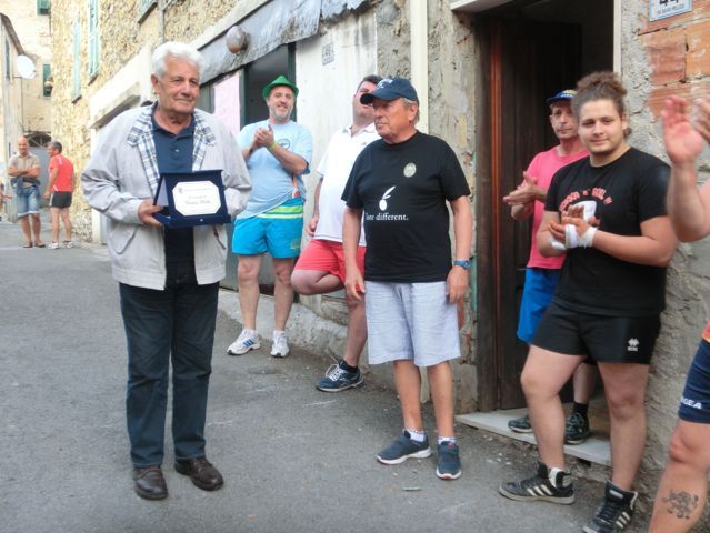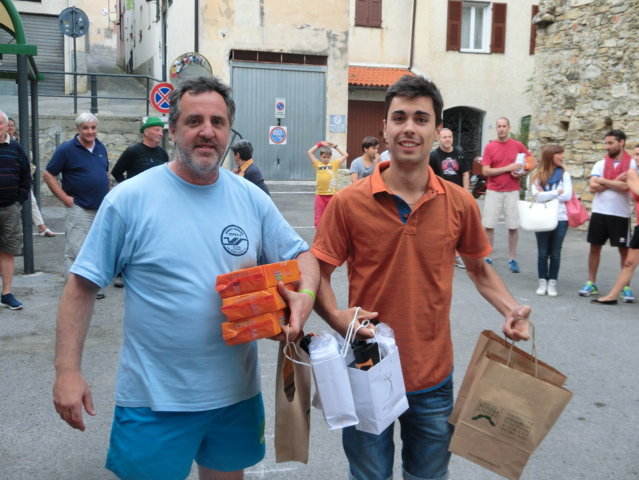Dopo un doveroso ricordo ai giocatori ed agli appassionati di pallonetto che non sono più tra noi e guardano il torneo dal cielo, ecco la teoria di premiazioni. In evidenza i giovani, come quelli di Borgomaro e i locali, come Renato Alessio e Corrado ed altri come Jacopo Guasco o Giorgio e Pietro Merano, il futuro della specialità. Miglior terzino ancora un giovane, Giulio Semeria, miglior battitore il sibilante Matteo Martini, miglior giocatore un Corrado Agnese davvero in grande spolvero. Premi anche per i cuochi Augusto, Gianni, Sergio e Giovanni e le assistenti di campo Francesca, Alessandra ed Erika oltre a Riccardo e Giorgio collaboratori di campo. Premi da occhi lucidi per il grande campione del passato Tommaso “Tommasino” Tallone di Dolcedo. A lui la targa “Enrico Mela”. Ce lo ricordiamo, Tommasino, con la sua maglietta blu, i pantaloncini immacolati da tennis e le scarpe Superga d’antan, con il suo passo veloce. La targa ricordo per Bruno “Pelleossa” va ad un suo caro amico, amico di sempre. Antonio Mela. Non ci sono parole. I trofei offerti da Antonio Mela del Frantoio di Sant’Agata di Oneglia sono bellissimi. Commozione finale e gran finale a tavola con la consueta cena dei giocatori e delle famiglie. Sant’Agata, il pallonetto, una grande famiglia in attesa delle sfide nazionali: prossimo appuntamento, a metà luglio con il torneo di Pieve di Teco. Sicuramente, ancora scintille.
