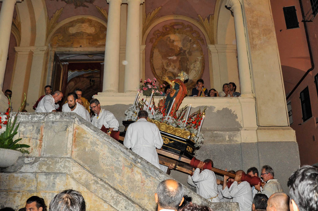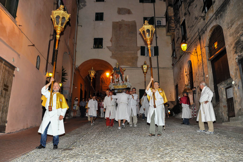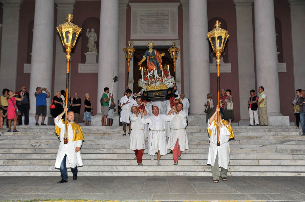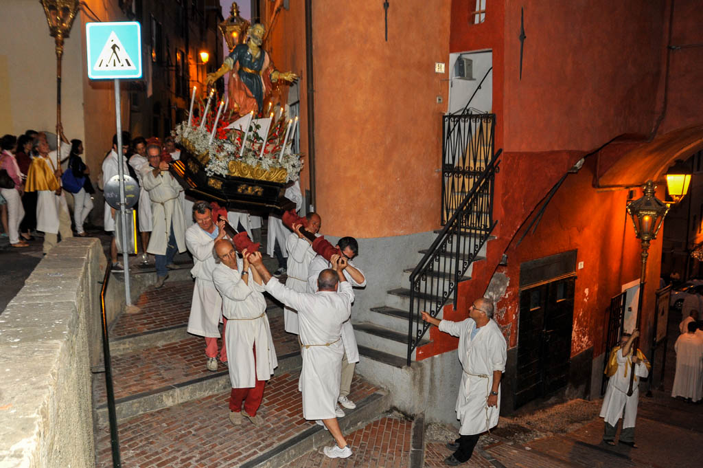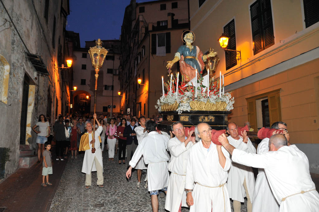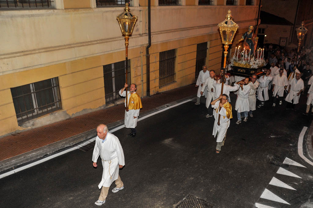 Si sono tenute ieri sera, lunedì 29 giugno, le solennità dei Santi Pietro e Paolo. La tradizionale cerimonia, organizzata dalla Confraternita di San Pietro Apostolo, fondata il 5 settembre 1599 a Porto Maurizio, ha preso il via con la Santa Messa Solenne, cui ha fatto seguito la processione notturna per le vie di Porto Maurizio. In chiusura la suggestiva corsa con la statua di San Pietro lungo la scalinata che porta all’Oratorio di San Pietro che come ogni anno ha richiamato centinaia di spettatori.
