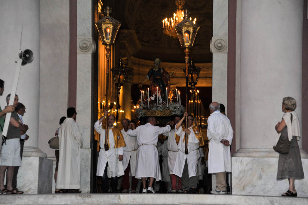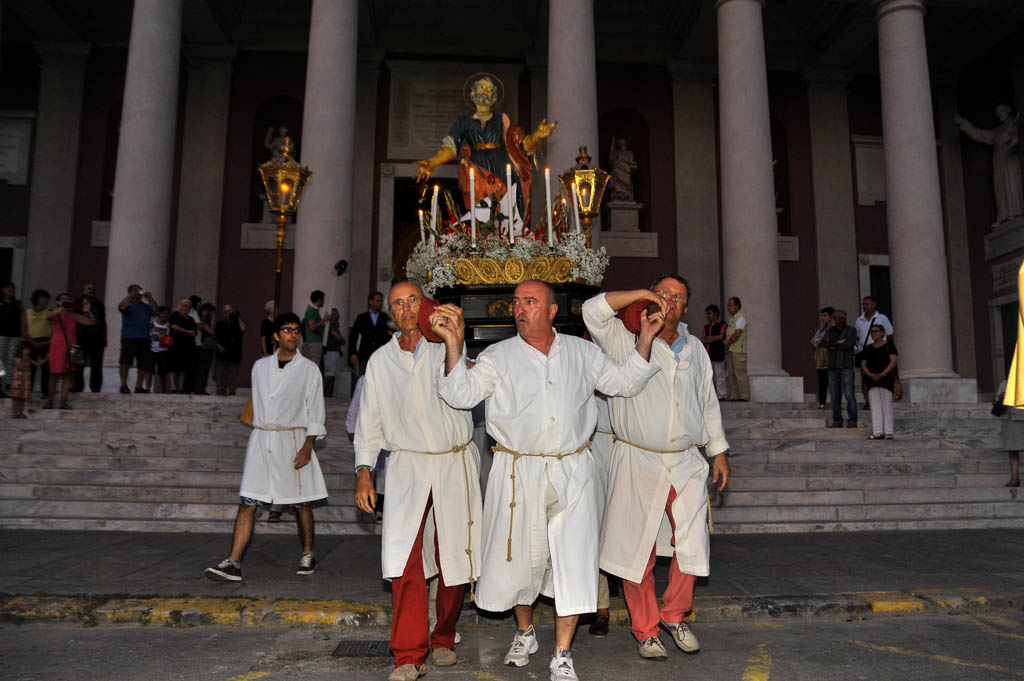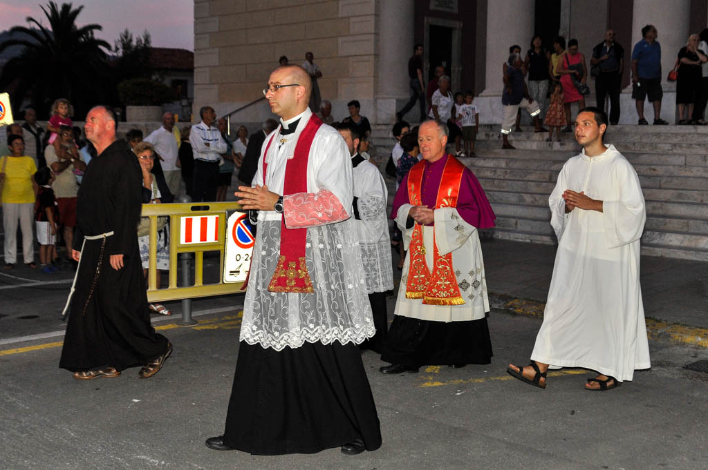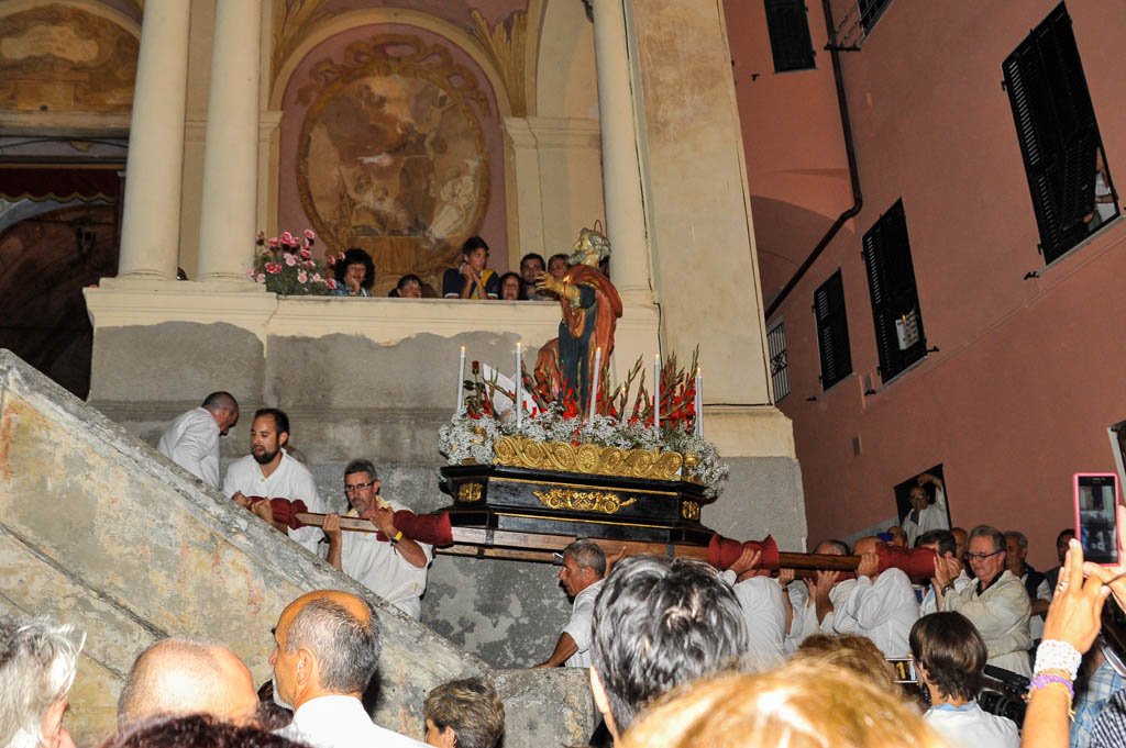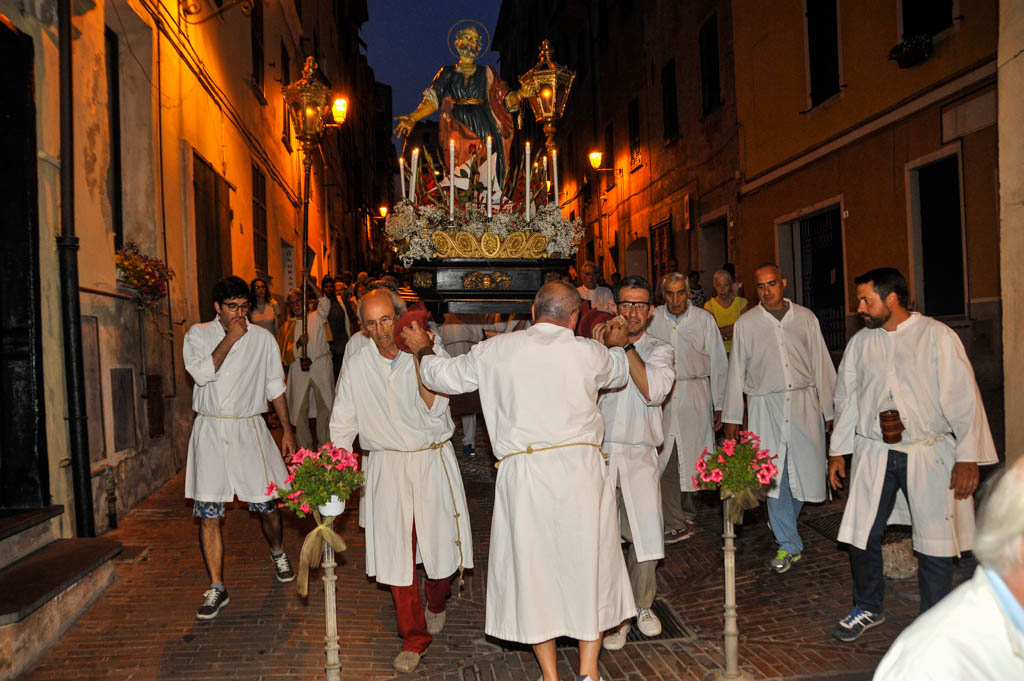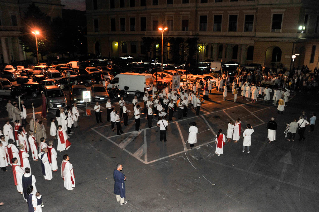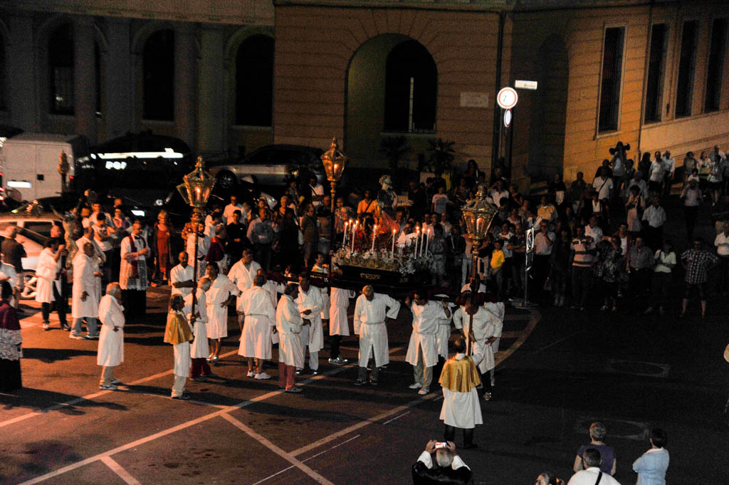Si sono tenute ieri sera, lunedì 29 giugno, le solennità dei Santi Pietro e Paolo. La tradizionale cerimonia, organizzata dalla Confraternita di San Pietro Apostolo, fondata il 5 settembre 1599 a Porto Maurizio, ha preso il via con la Santa Messa Solenne, cui ha fatto seguito la processione notturna per le vie di Porto Maurizio. In chiusura la suggestiva corsa con la statua di San Pietro lungo la scalinata che porta all’Oratorio di San Pietro che come ogni anno ha richiamato centinaia di spettatori.
