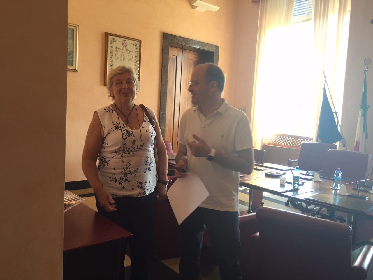 Imperia – Si è tenuto questa mattina, lontano occhi indiscreti (tranne quelli di ImperiaPost), il tanto atteso chiarimento/confronto tra i consiglieri di maggioranza e il sindaco Capacci. Niente giunta, niente segretari di partito, neppure segretarie o messi comunali che in qualche modo avrebbero potuto disturbare il dibattito. Sono entrati in sala giunta alle 10.30 e sono rimasti fino alle 13 i consiglieri: Fulvio Balestra, Roberto Saluzzo, Alessandro Savioli, Natalia Riccò, Ester D’Agostino ( per Imperia Cambia), Gianfranca Mezzera e Lorenzo Lagorio (per il PD) e Simone Vassallo (NCD). Assente l’esponente di “Imperia di tutti, Imperia per Tutti” Riccardo Ghigliazza. Un confronto schietto, senza peli sulla lingua in cui il primo cittadino, che ha fatto il punto della situazione amministrativa non volendo però affrontare il discorso rimpasto, ha chiesto ai consiglieri se fossero ancora intenzionati a proseguire l’azione amministrativa. Inoltre, viste le rimostranze dei consiglieri che spesso vengono a conoscenza delle decisioni amministrative dai giornali, il sindaco ha deciso che ogni assessore dovrà dedicare due ore alla settimana ai consiglieri per aggiornarli sull’azione amministrativa e per accogliere le loro istanze.
