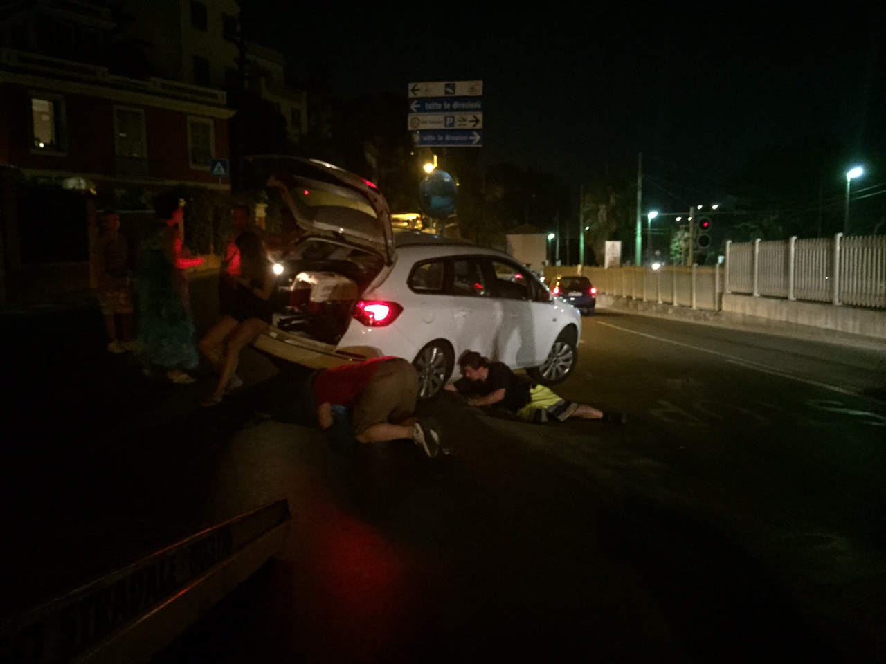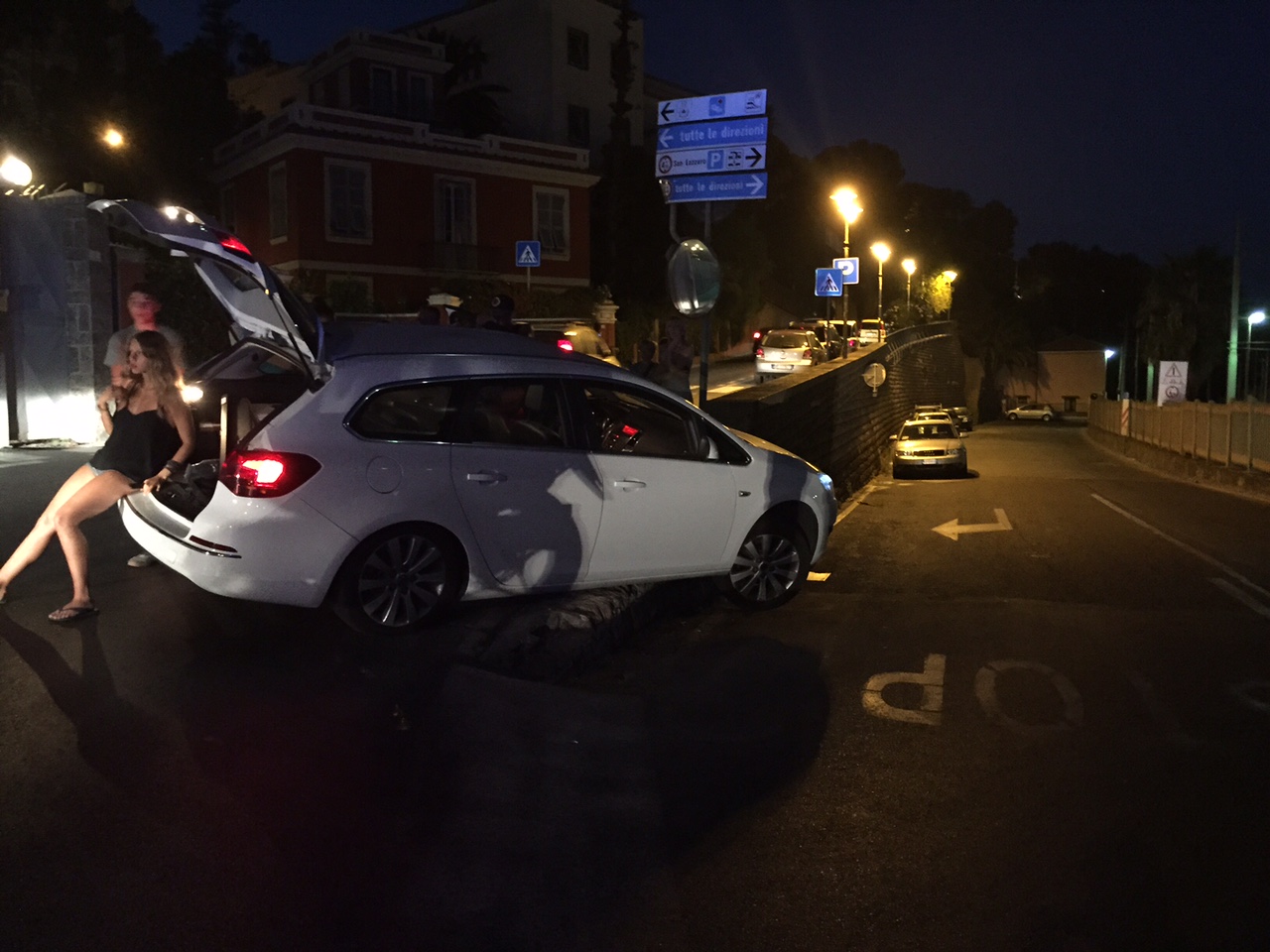 IMPERIA – Restano in bilico con la propria auto sul muretto che divide via Battaglione Alpini Pieve di Teco. È successo ieri sera, martedì 28 luglio, a Imperia, protagonisti quattro turisti lombardi, di Varese, in vacanza a Imperia. Secondo una prima ricostruzione l’uomo alla guida, proveniente da Porto Maurizio e diretto a Oneglia, nel tentativo di far passare due ambulanze, si sarebbe allargato troppo, finendo con le ruote fuori dalla carreggiata.