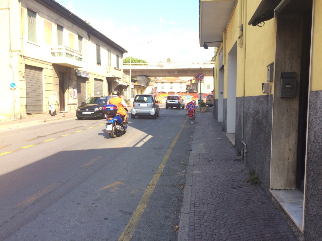 Io ho fatto presente questo problema al sindaco che , mi ha risposto “io non so da chi devono percepire i soldi” . Lui addirittura è venuto per spiegarci delle cose e lui stesso non ha trovato parcheggio e infatti ha dovuto posteggiare momentaneamente vicino al mio negozio, cosa che da pericolo. Prima c’erano tre posti auto, carico e scarico che, non usava mai nessuno per scaricare, e la gente li usava così. Li hanno tolti per motivi di sicurezza, quando poi la carreggiata in quel punto non è stata modificata in nessuna maniera. Posso capire questi dei motorini che sono molto più vicini alla curva che hanno fatto per la deviazione. Noi volgiamo una risposta, che ci diano qualche parcheggio, perché qua la situazione è talmente zero. Clienti zero, incasso è diventato un terzo di quello che era nel mese di maggio. Quindi, o non paghiamo più le tasse o altrimenti finché non risolvono la situazione io sono capace di mettermi qui in mezzo e fermare il traffico. È una cosa indescrivibile”.