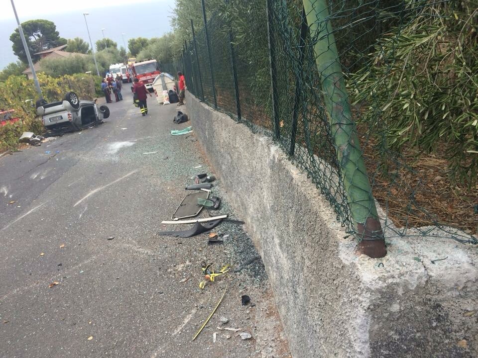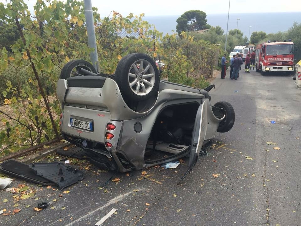 Grave incidente stradale questo pomeriggio in via Monade a Diano Castello. Un`auto con a bordo due giovani, fratello e sorella, per cause ancora in fase di accertamento, si è ribaltata dopo aver impattato contro un palo a bordo strada.