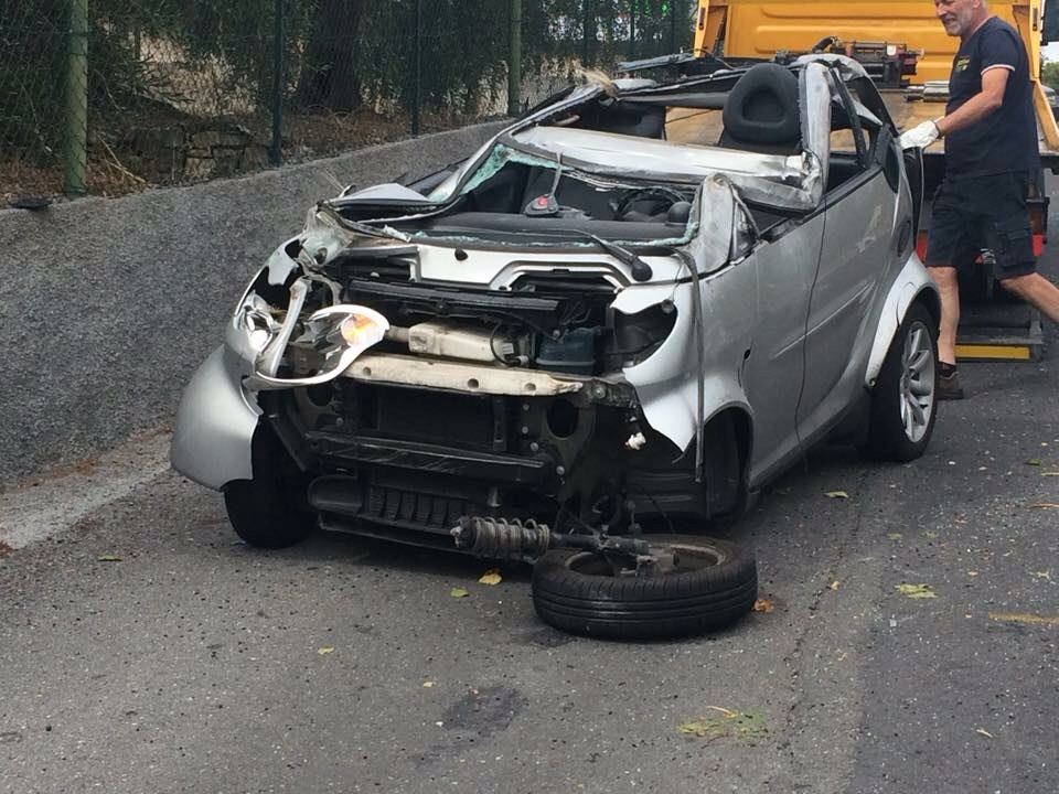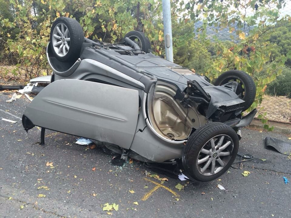 Dopo aver strisciato per alcuni metri cappottata, la vettura, una Smart, si è schiantata contro un palo dalla parte opposta della strada. Il ragazzo, 19 anni, F.N., ha riportato varie lesioni e la sospetta frattura dell’omero, così come la sorella, di 17 anni, che ha riportato anche una profonda ferita all’avambraccio.
