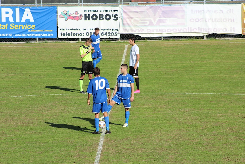 Al 13′ su punizione al limite dell’area gol annullato a De Simeis dell’Imperia, l’arbitro aveva fischiato in tempi non sospetti.