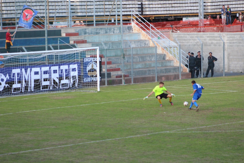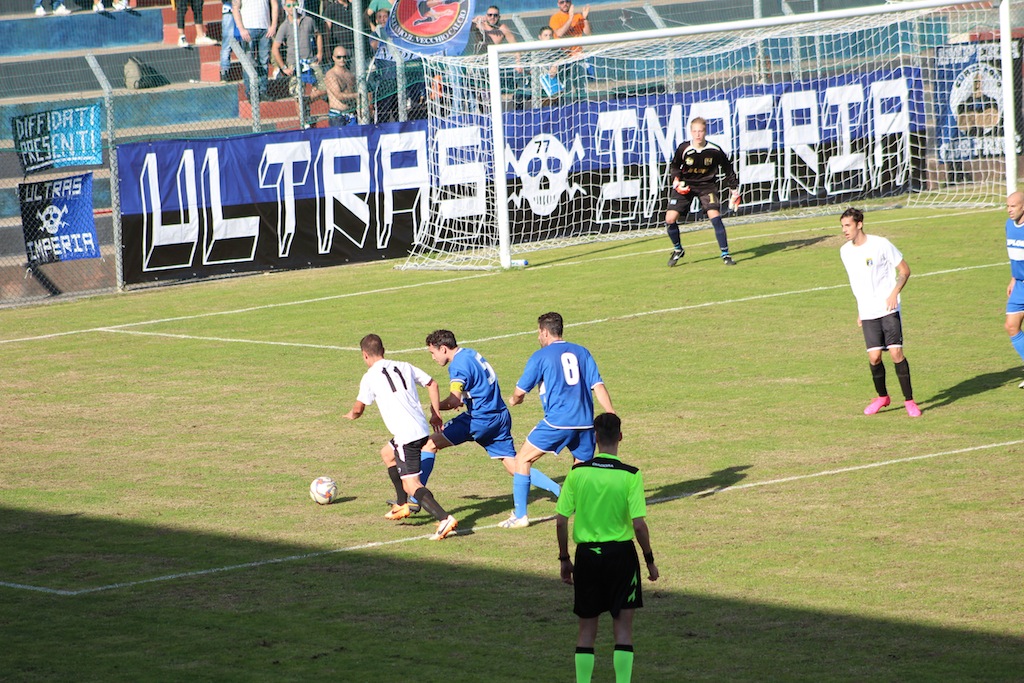 Al 20′ occasione sprecata per l’Imperia. Cross in area di Dominici attraversa l’area senza che nessuno intercetti il pallone.