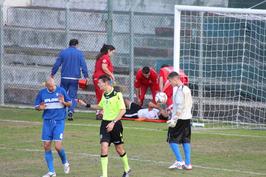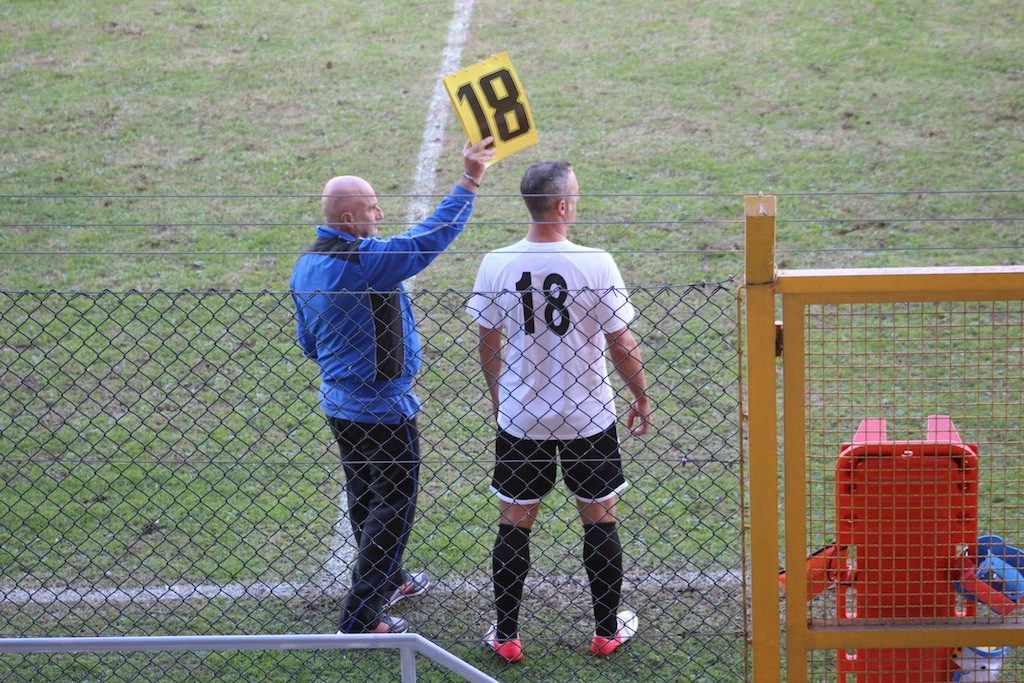 37′ Occasione d’oro per l’Imperia con Dominici che di testa, su cross di Prunecchi, non inquadra la porta, poi si infortuna. Al suo posto entra Moscatelli