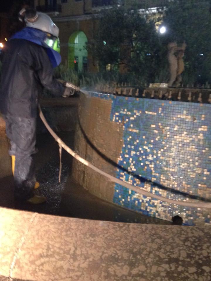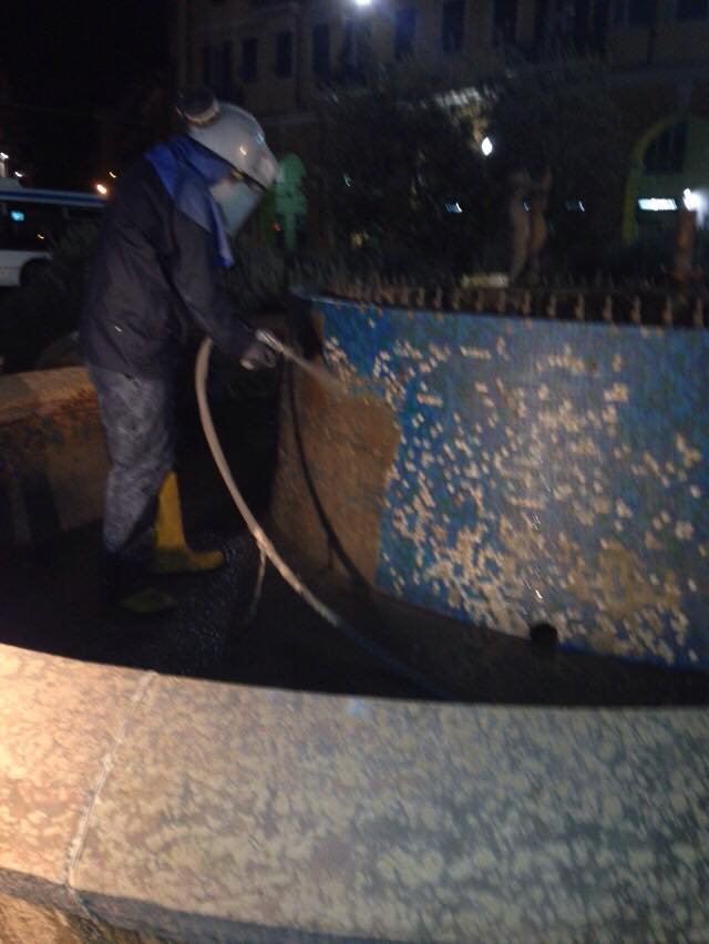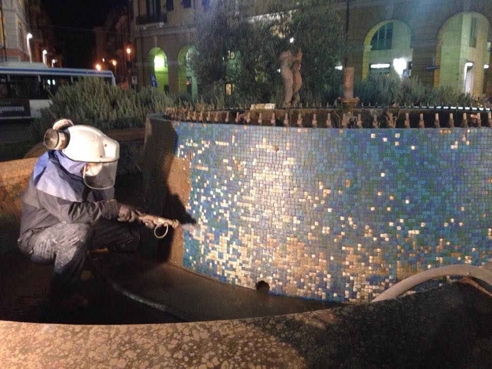 Imperia – Ripulito nella notte uno dei simboli della città, la fontana di piazza Dante Alighieri. I lavori di pulizia sono stati affidati alla ditta “La Puliter” dall’Imperia Servizi a cui compete la gestione della fontana. Le condizioni di degrado in cui versava il monumento hanno obbligato la società partecipata dal Comune ad intervenire. Nelle immagini il “prima” e dopo l’intervento della ditta specializzata.