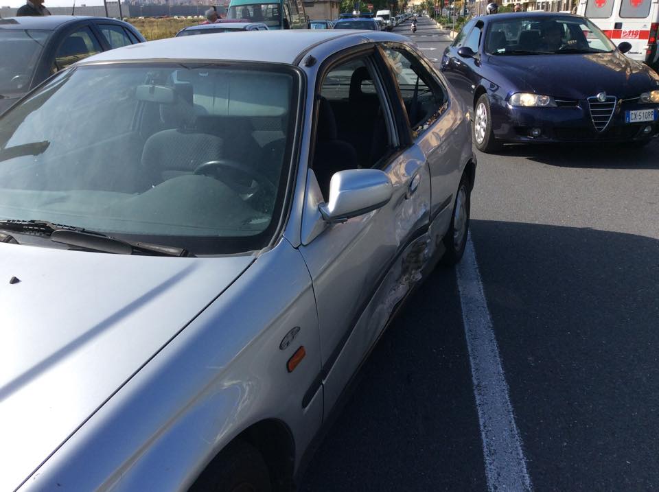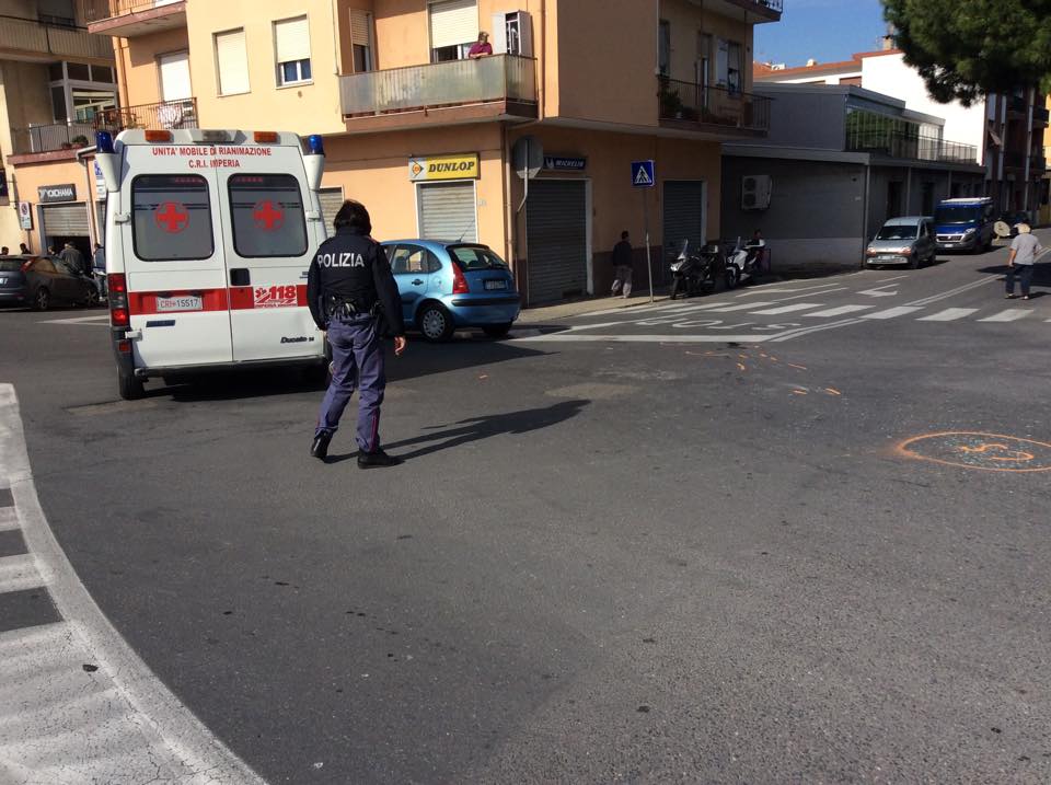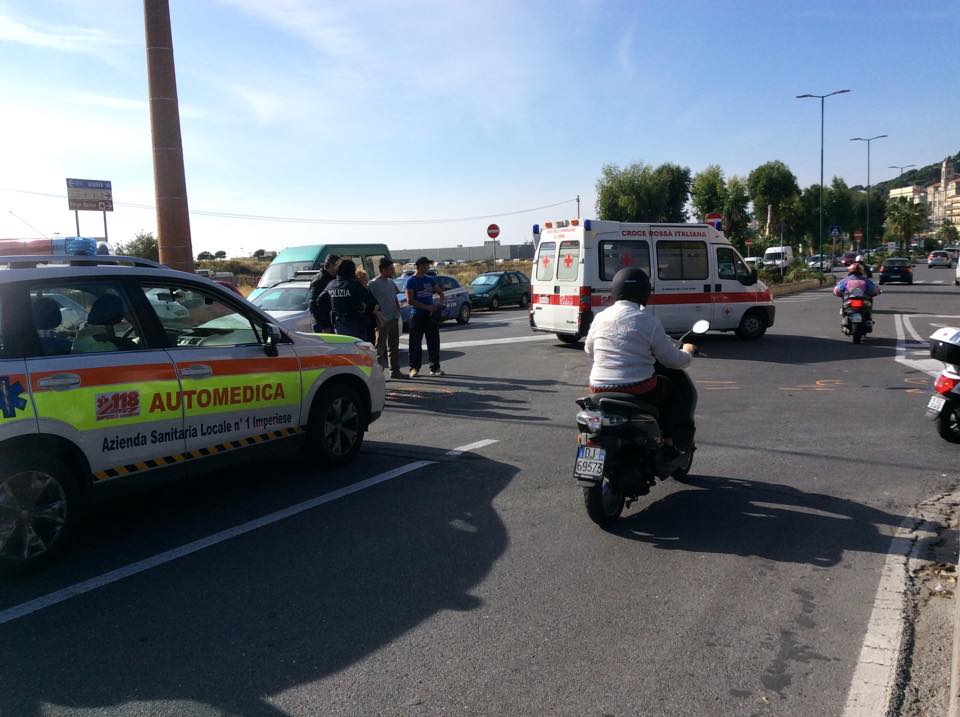 Brutto incidente nella tarda mattinata di oggi, mercoledì 21 ottobre, sul Lungomare Vespucci, all’incrocio con via Delbecchi. Uno scooter con a bordo un 32enne, diretto verso Porto Maurizio, si è scontrato per cause ancora in fase di accertamento con un’auto, una Honda Civic, con a bordo un uomo e una donna (quest’ultima, M.A., 75 anni, alla guida) proveniente da via Delbecchi e intenta a svoltare in direzione Oneglia.
