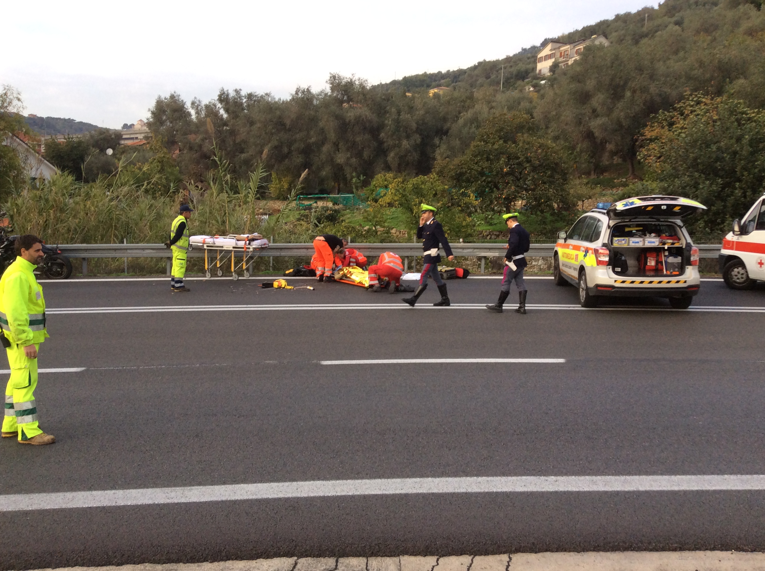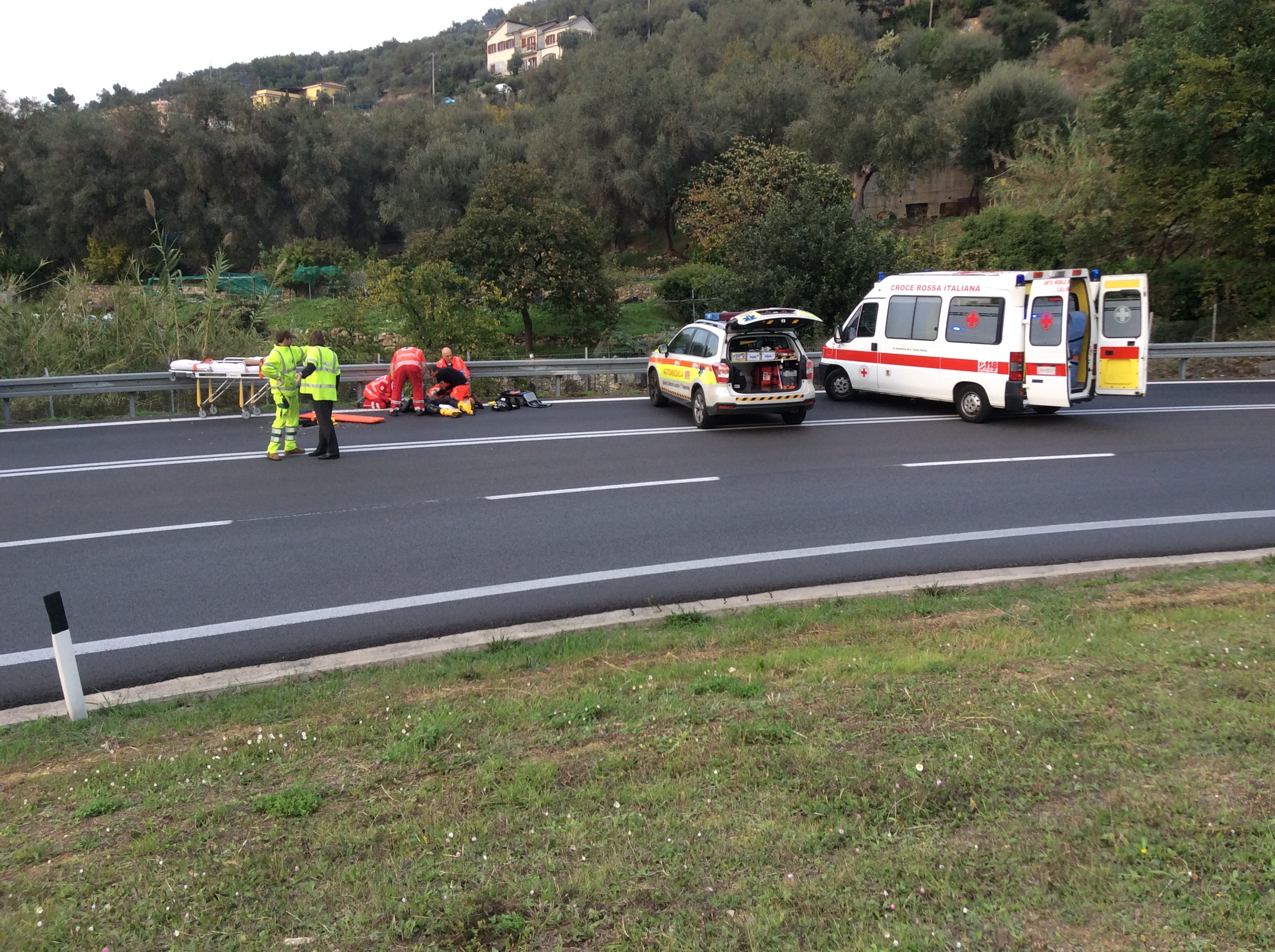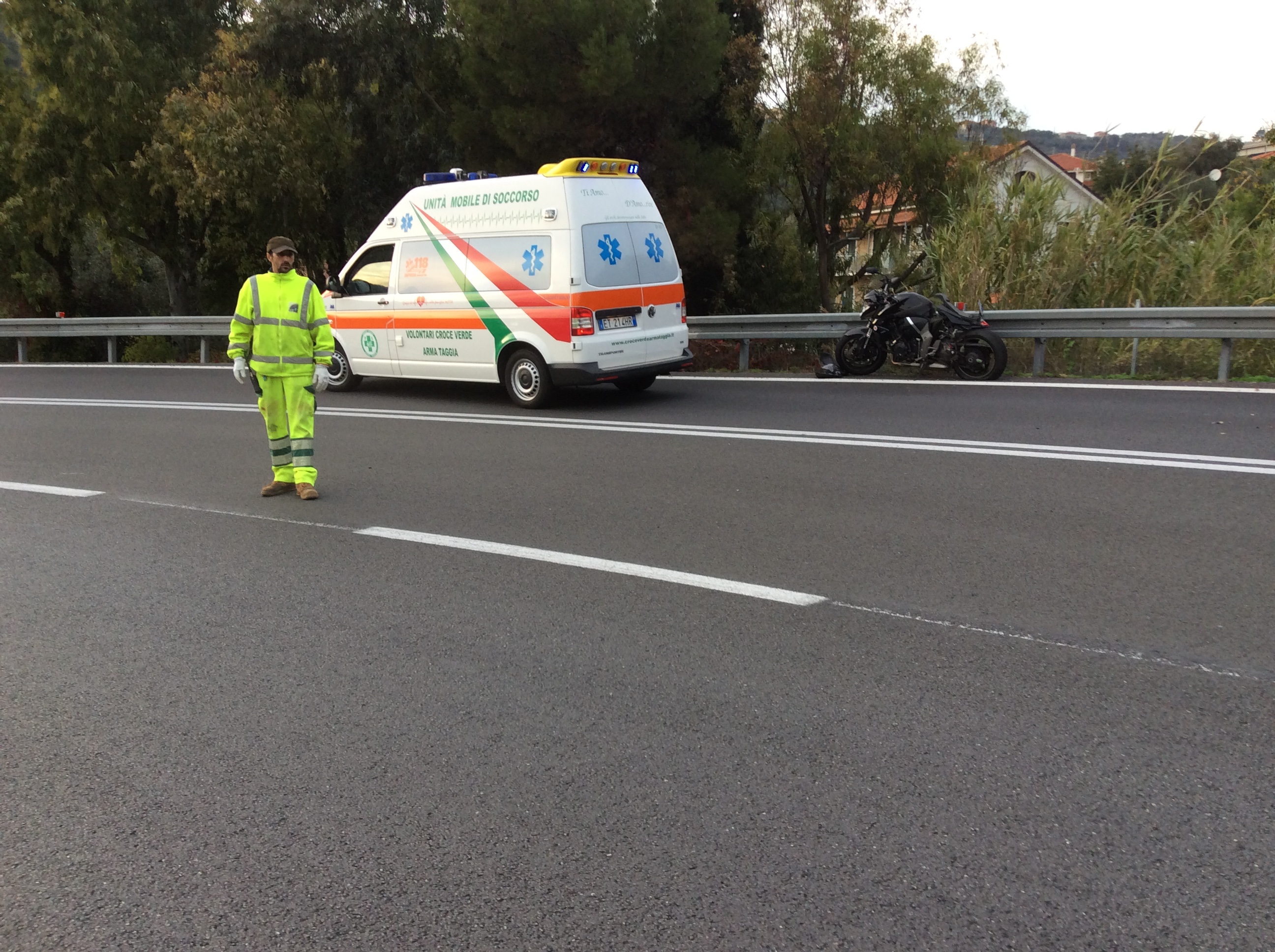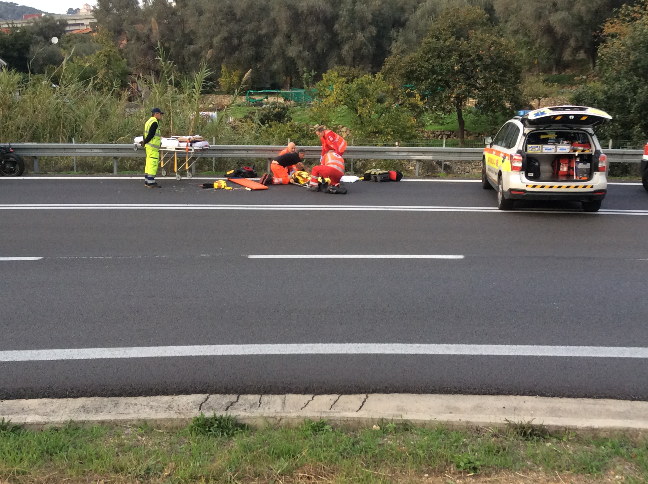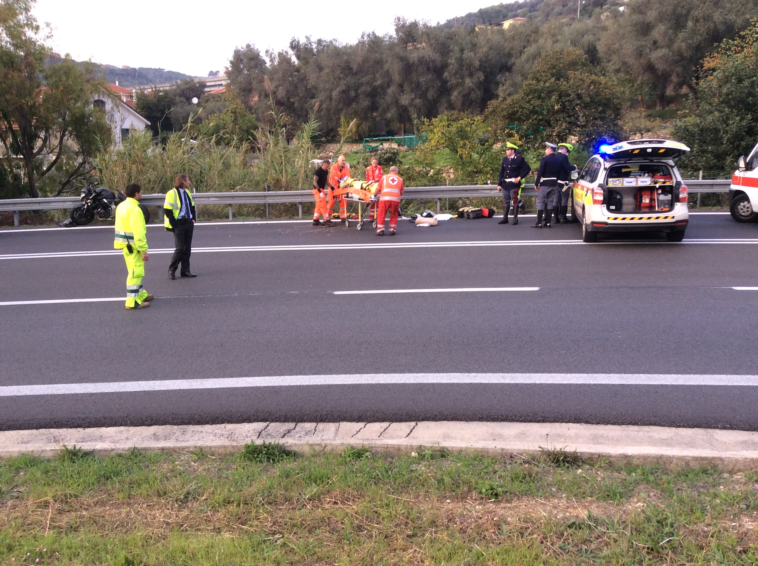 Grave incidente stradale questo pomeriggio nei pressi dello svincolo autostradale di Imperia Est. Un giovane di 25 anni, S.M., per cause ancora in fase di accertamento, ha perso il controllo della sua moto mentre era diretto verso Imperia. Non è chiaro se la moto abbia o meno impattato contro il muro o il guardrail prima di terminare la sua corsa al lato della carreggiata.