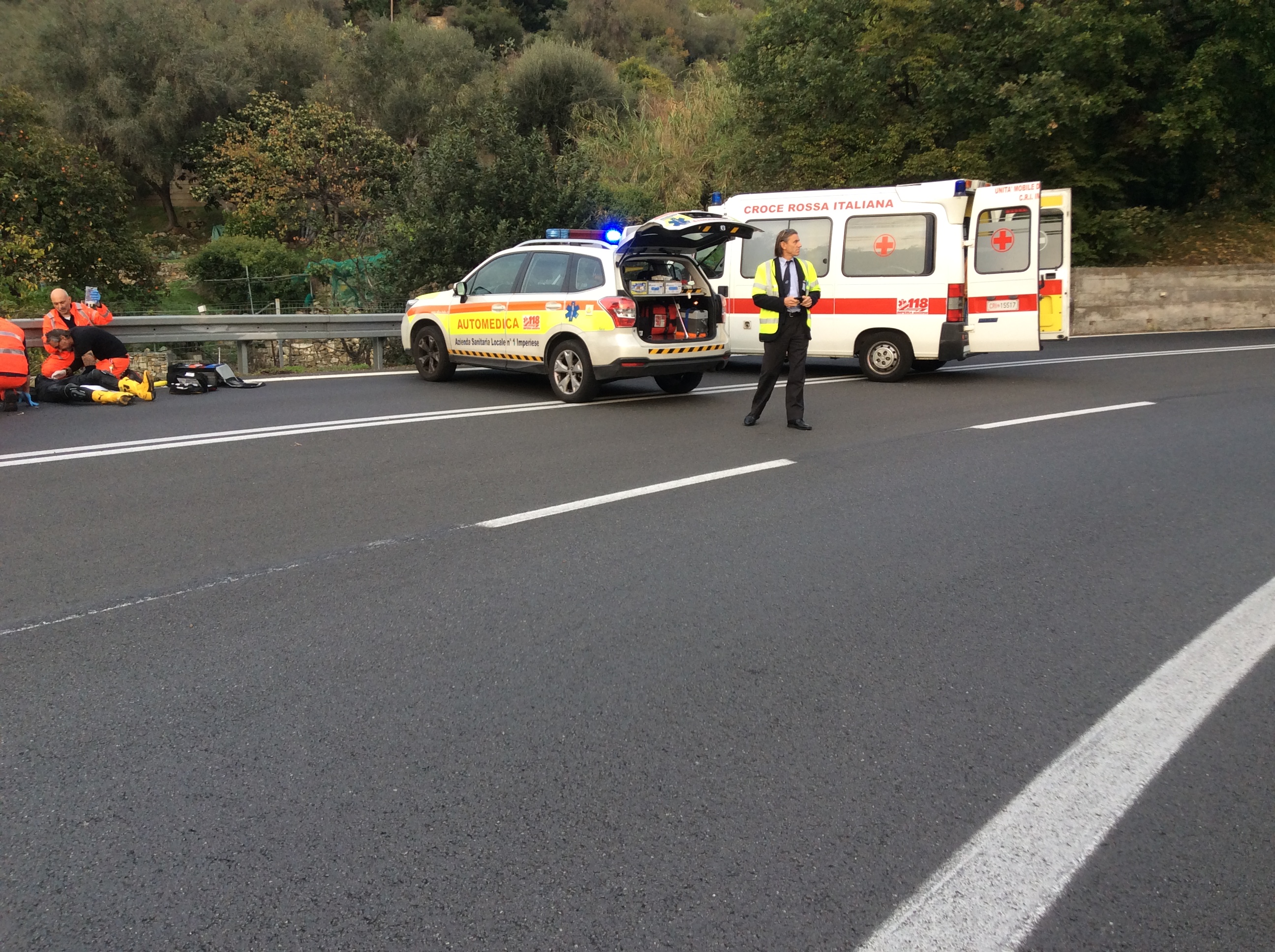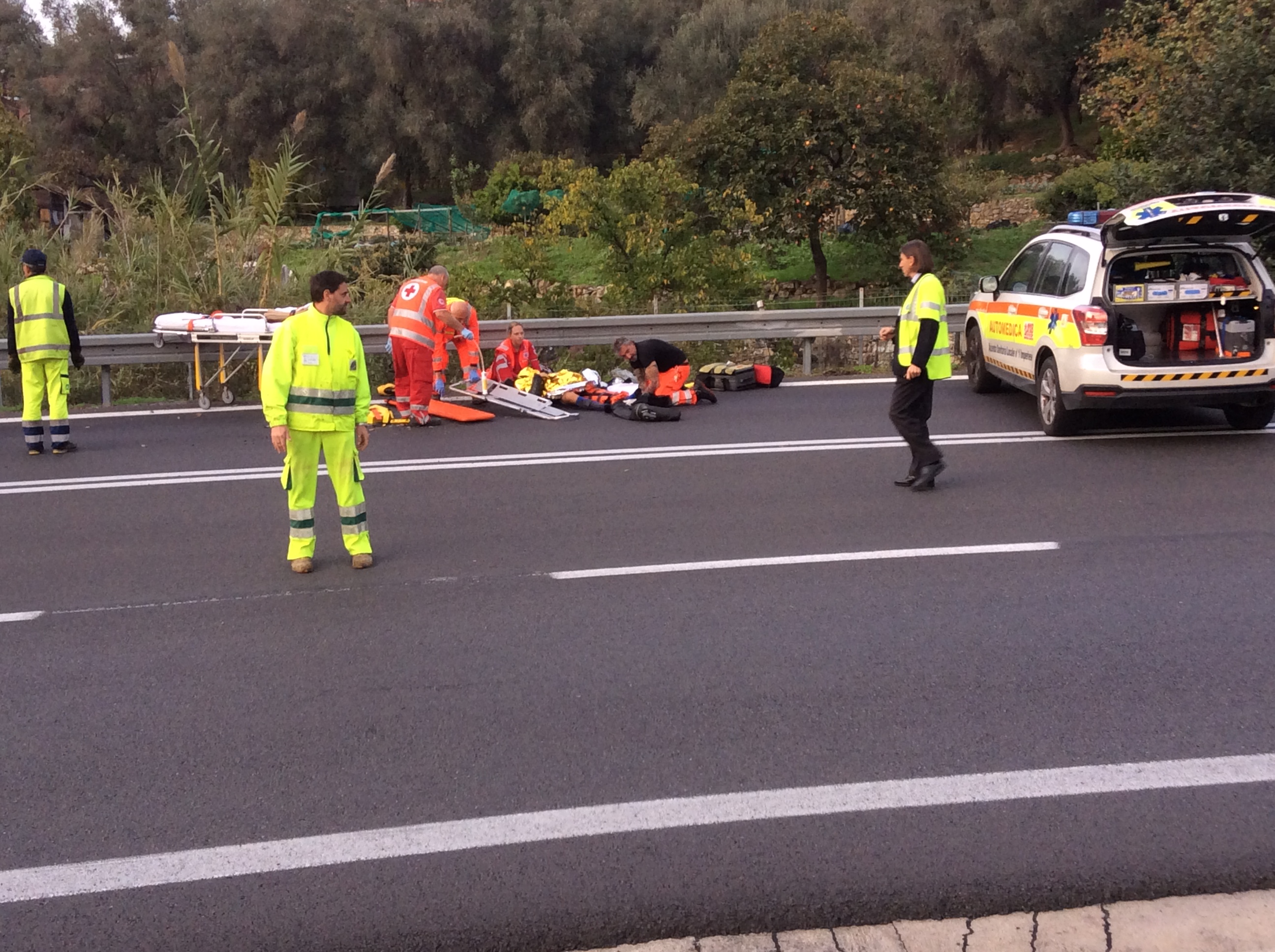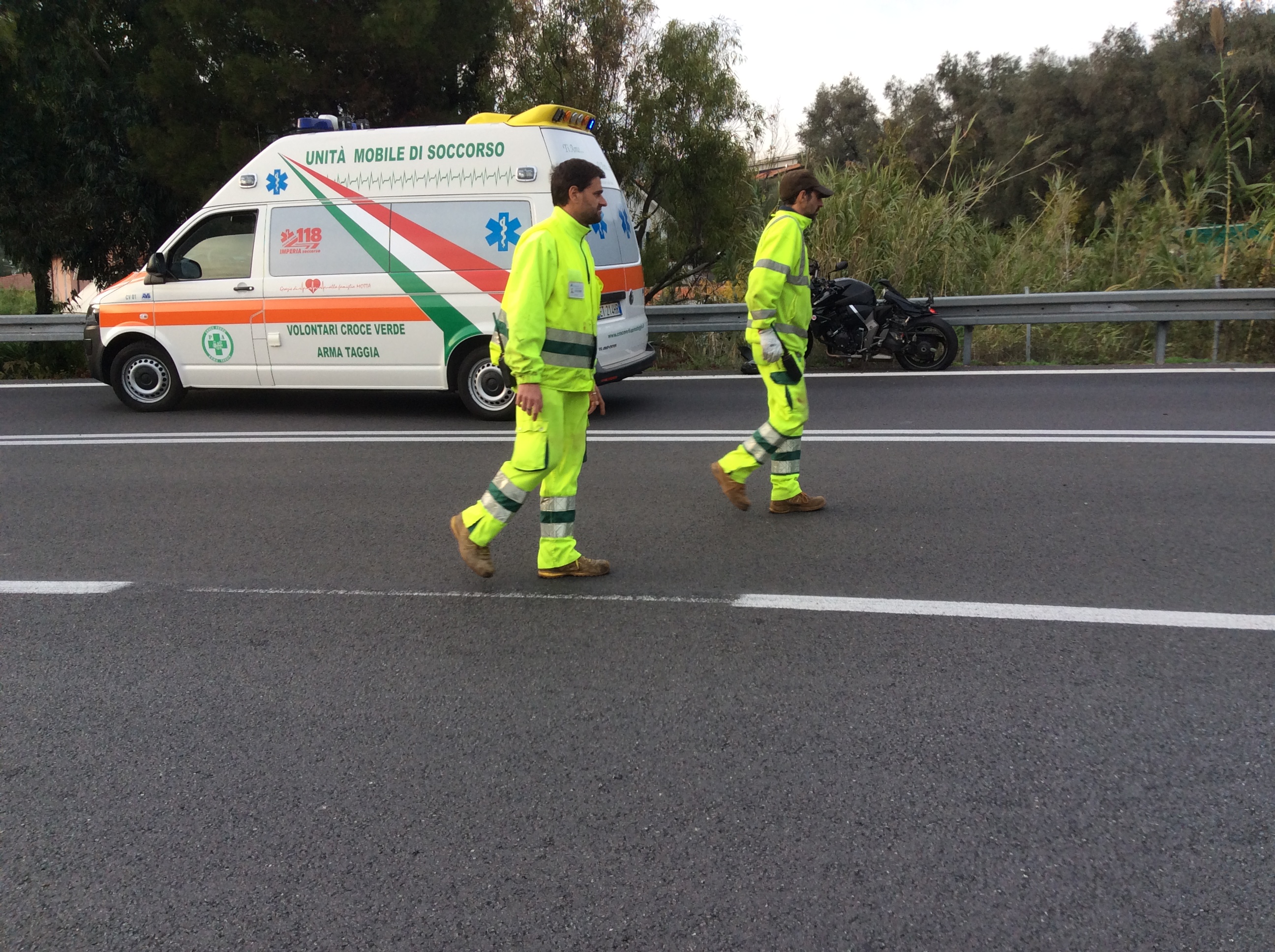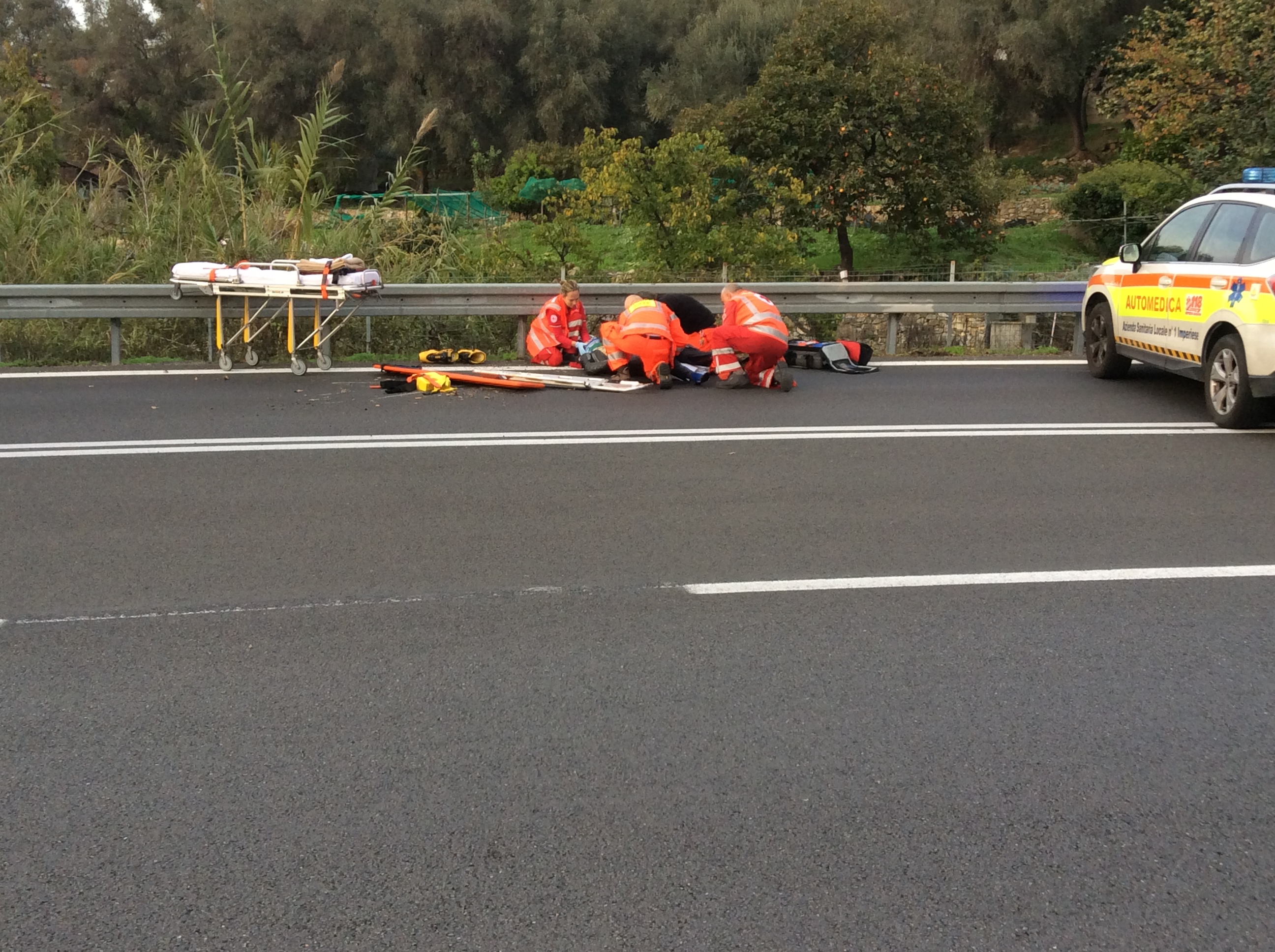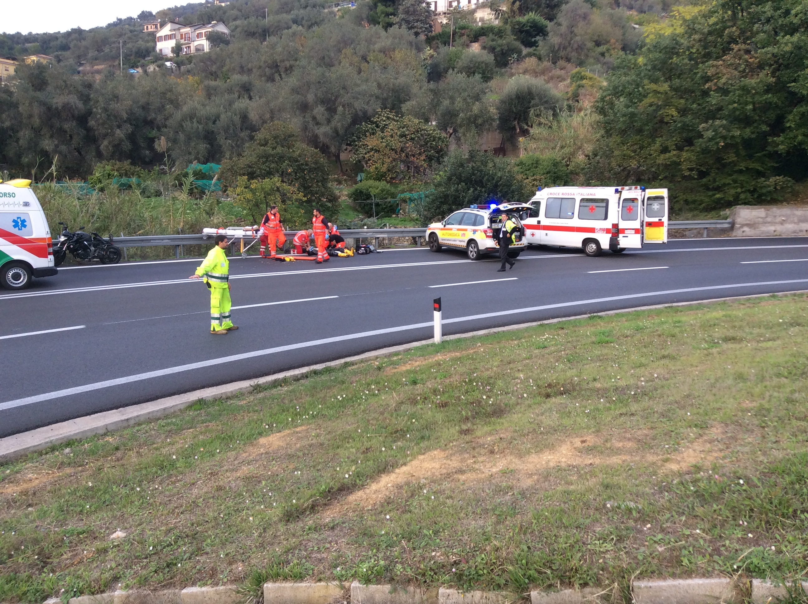 Grave incidente stradale questo pomeriggio nei pressi dello svincolo autostradale di Imperia Est. Un giovane di 25 anni, S.M., per cause ancora in fase di accertamento, ha perso il controllo della sua moto mentre era diretto verso Imperia. Non è chiaro se la moto abbia o meno impattato contro il muro o il guardrail prima di terminare la sua corsa al lato della carreggiata.