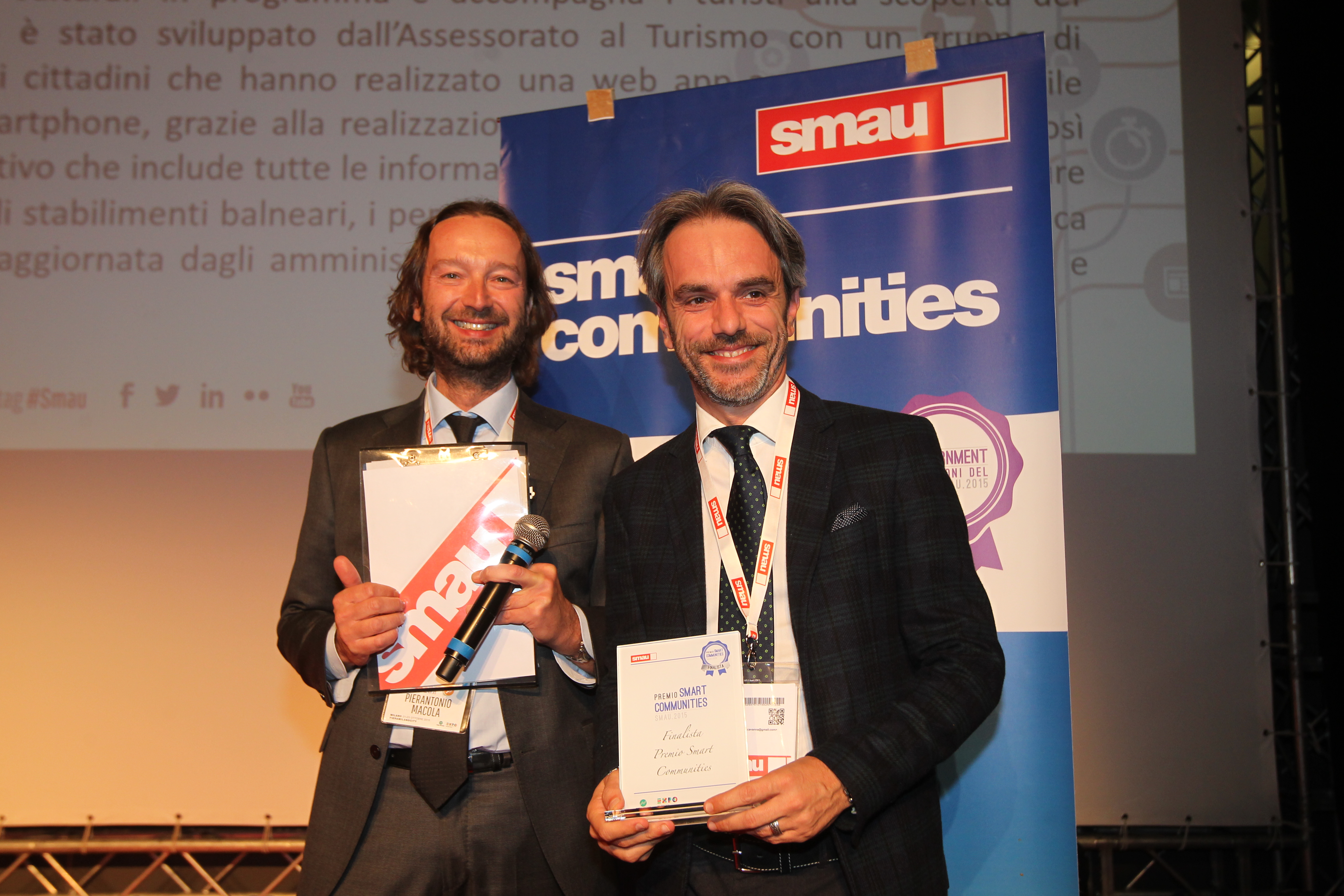 Appuntamento più importante di giovedì 22 è stato il Premio Smart Communities che si basa su tre ingredienti essenziali: amministrazioni locali, Imprese innovative e Start up. Sono stati premiati i casi di successo ritenuti dalla direzione Smau più soddisfacenti e innovativi in tema di socialità e soluzioni territoriali.