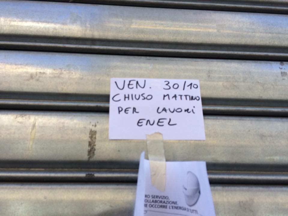 Riportando come esempio un altra interruzione che era avvenuta due settimane fa circa, con preavviso di 5 giorni e con orario indicativamente 13 – 15, orario che per tutti quanti non ha arrecato danno come in questa mattinata qua. Ora mi ritrovo qua, da una mezz’oretta senza corrente e 10/15 clienti gli ho dovuti rispedire indietro. Siamo qua nell’attesa sperando che come hanno detto possano finire prima. spero che finiscano prima delle 12.30″.