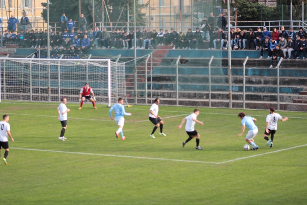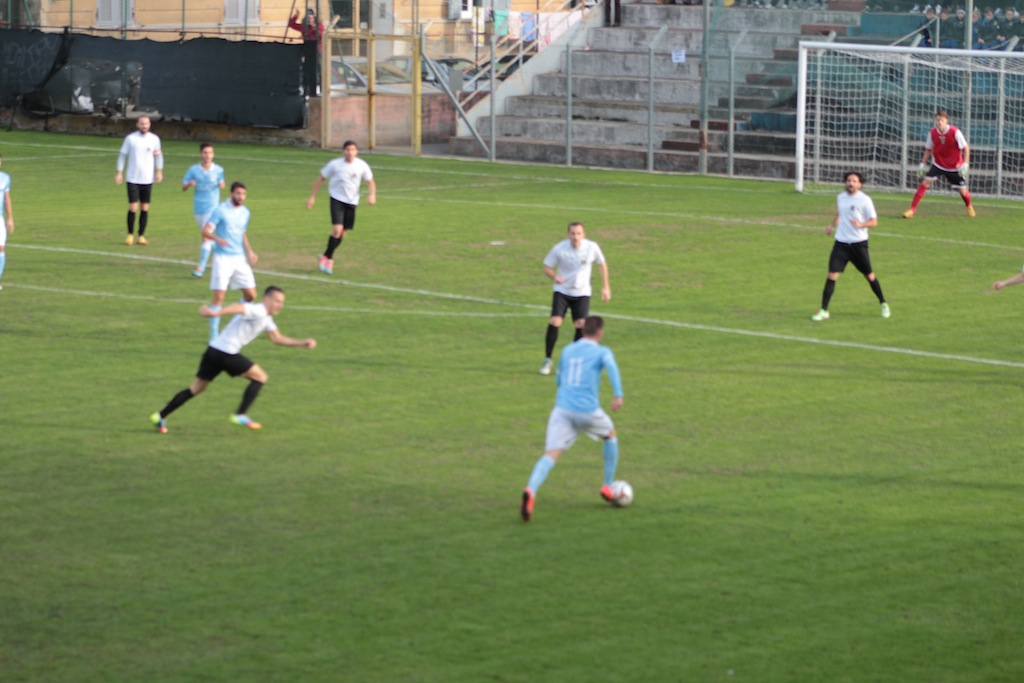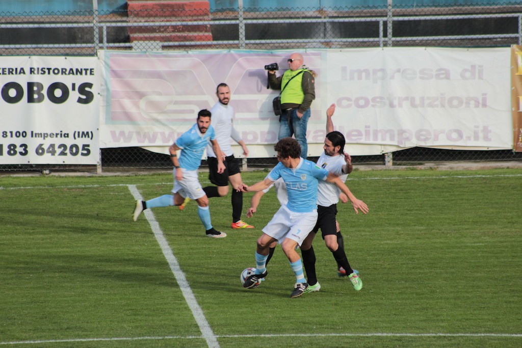 Una partita intensa colma di occasioni sprecate e forse di un pizzico di sfortuna, quella appena conclusa allo stadio Nino Ciccione che ha registrato la vittoria dell’Unione Sanremo per 2-1 sull’Imperia Calcio. Dopo una fase iniziale in cui i neroazzurri sono andati in svantaggio grazie al gol di testa sugli sviluppi di un calcio d’angolo di Andrea Dalessandro, l’Imperia ha preso vigore e negli ultimi 20 minuti del primo tempo ha messo in difficoltà la retroguardia matuziana fino al gol sciupato di Prunecchi , disturbato dalla difesa avversaria, davanti all’ex compagno di squadra, il portiere Geraci, ha spedito la palla sopra la traversa. Un minuto dopo un’altra occasione da gol per il bomber dell’Imperia che però non riesce a concretizzare. Il primo tempo si chiude sull’1-0 per gli ospiti ma l’Imperia è cresciuta molto e il mister Bocchi ha già in mente alcuni cambi tattici.