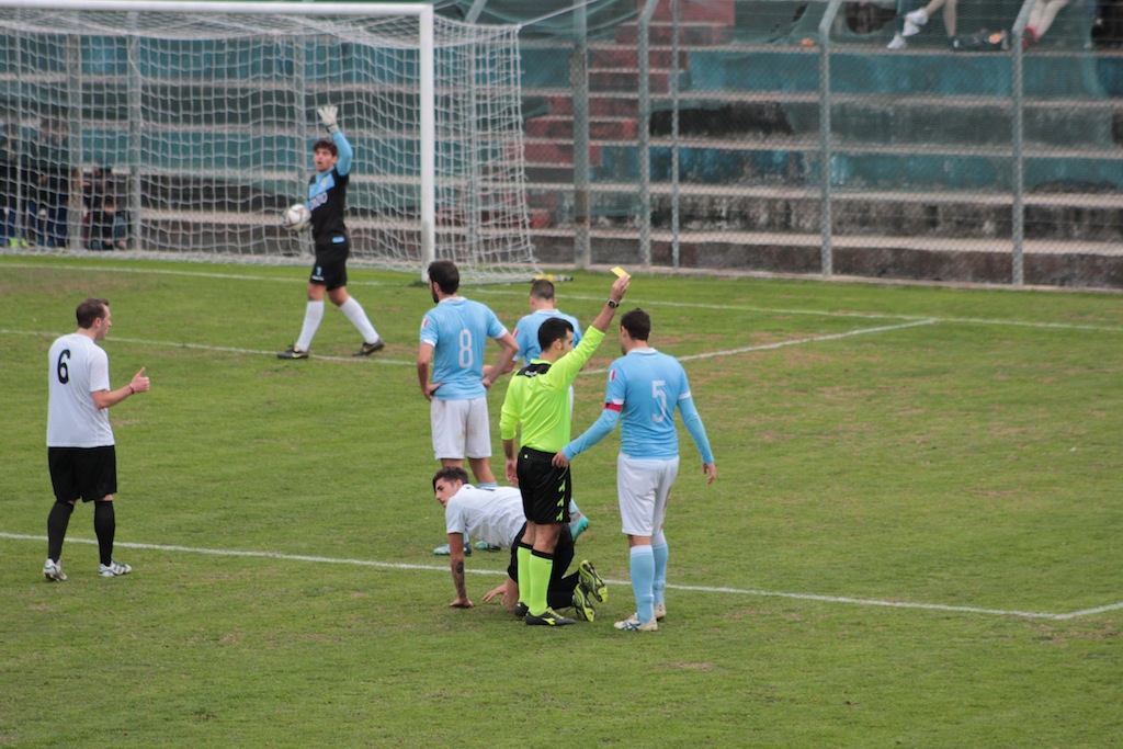 La ripresa registra immediatamente un doppio cambio nelle fila dell’Imperia: escono Roda e Castagna per Faedo e Dominici. Dopo qualche minuto ci pensa San Trucco a non compromettere definitivamente il match dell’Imperia opponendosi al tiro di Dalessandro, trovatosi da solo davanti al numero 1 dei neroazzurri. All’11’ sugli sviluppi di una punizione la barriera della sanremese tocca con le mani il pallone e l’arbitro Pascariello indica il dischetto. Ci pensa Prunecchi a trasformare il penalty siglando il pareggio. Al 16′ del secondo tempo viene annullato un gol alla sanremese per fuori gioco, l’arbitro aveva fischiato ancor prima della conclusione di testa. Sette minuti dopo tocca a Prunecchi a trovarsi da solo davanti al portiere avversario ma sciupa clamorosamente il gol del vantaggio neroazzurri. Al 73′ Cardini rifila una gomitata in faccia ad Ambrosini e guadagna gli spogliatoi, cartellino rosso diretto. Al 80′ l’ex Imperia Davide Rovella su passaggio in area di Capra batta Trucco portanto la Sanremese nuovamente in vantaggio. Al 92′ l’ultimo sussulto dell’Imperia con Faedo che dopo un’azione spettacolare sciupa ancora l’occasione di portare a casa un punto preziosissimo.