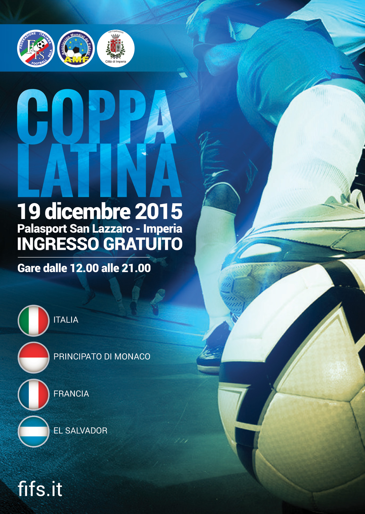 Sarà il palasport di Imperia ad ospitare il ritorno della coppa Latina di Football Sala in Italia. L’impianto di zona San Lazzaro, il 19 dicembre, sarà teatro di questo evento sportivo che avrà come protagoniste le nazionali di Italia, Principato di Monaco, El Salvador e Francia per contendersi la 13ª edizione della “Nationals Cup Latina AMF 2015”, quadrangolare Omologato dalla Federazione Mondiale di Football Sala.