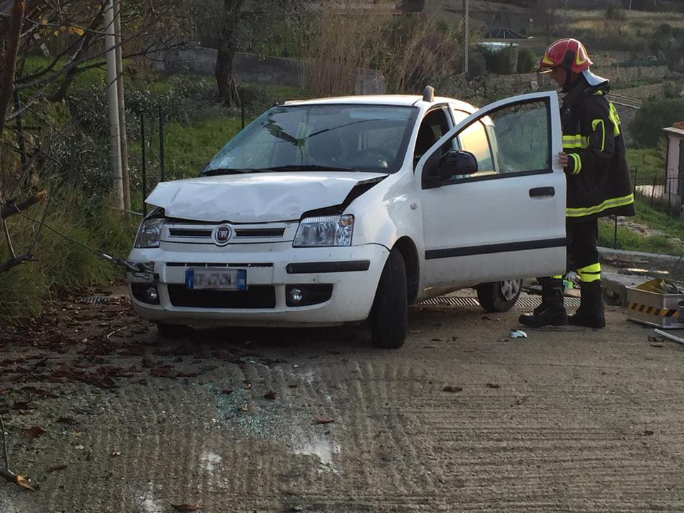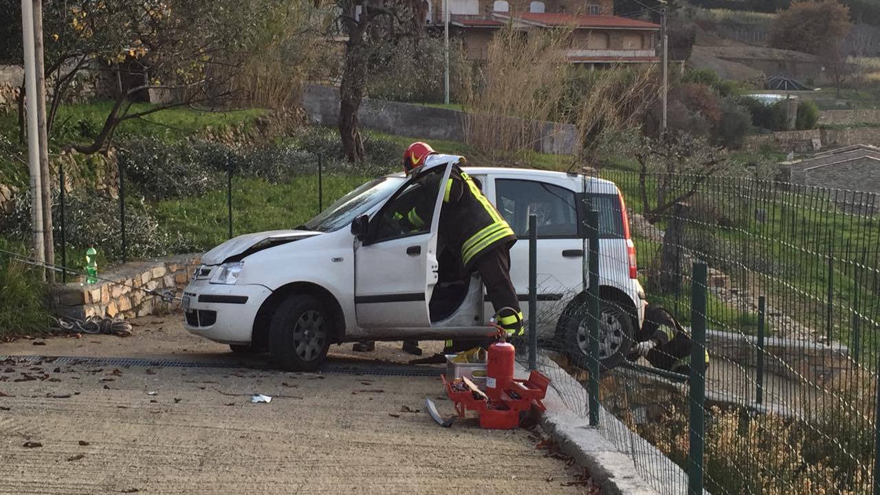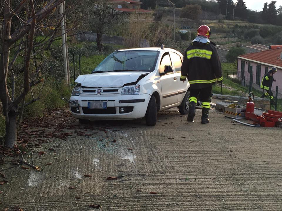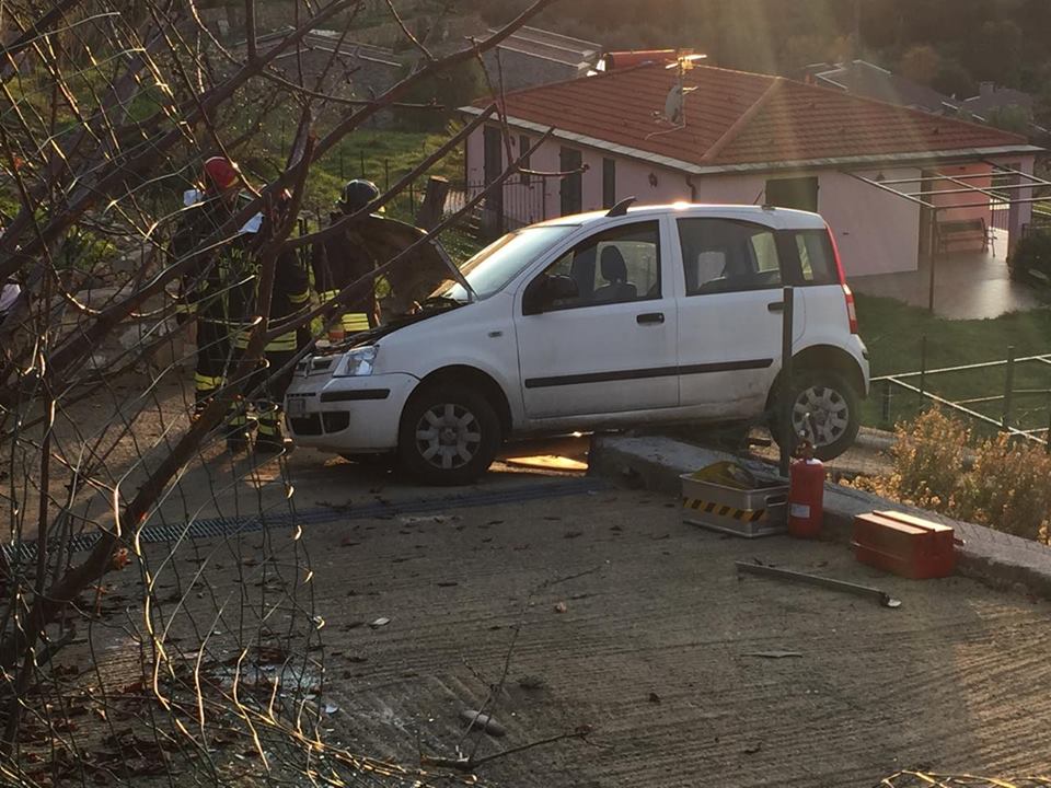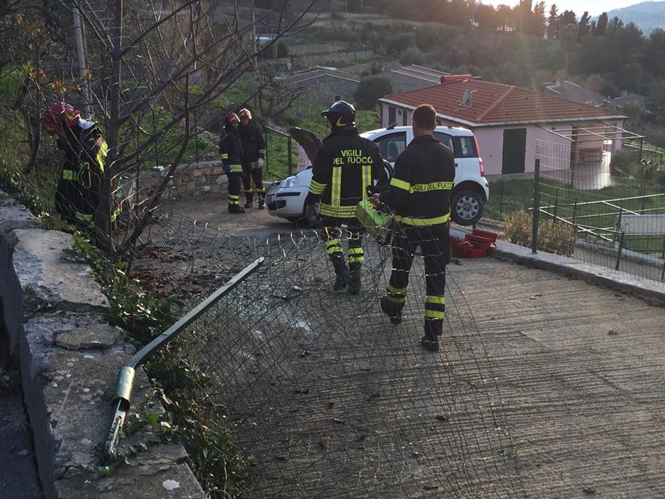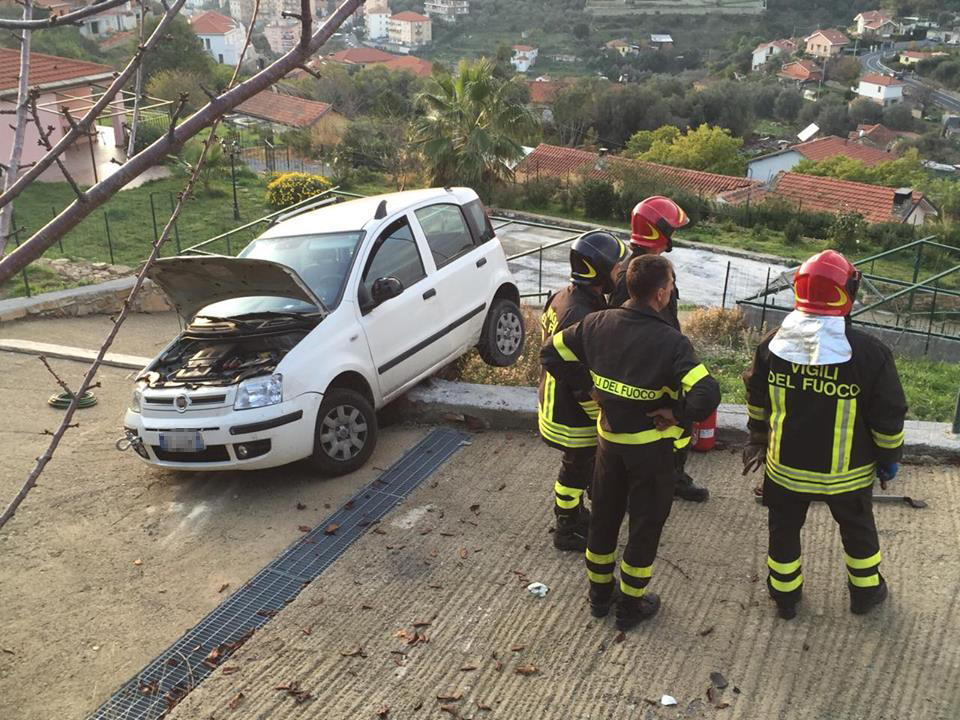 Imperia. Poteva finire in tragedia l’incidente avvenuto attorno alle 16 di questo pomeriggio in via Diano Calderina a Oneglia.Una donna, R.O. di 65 anni, probabilmente a causa di un malore è precipitata fuori strada volando con la sua auto, una Fiat Panda, nel vialetto di ingresso di alcune villette. La corsa dell’auto, fortunatamente è stata fermata da alcuni paletti e da un muretto di recinzione rimanendo però in bilico.