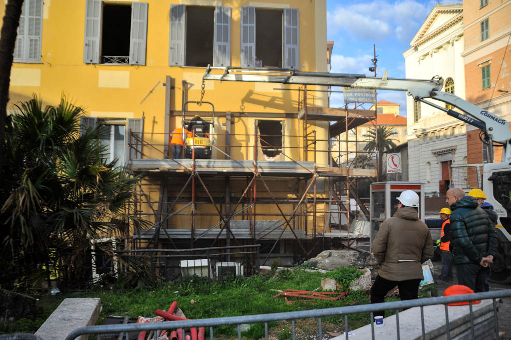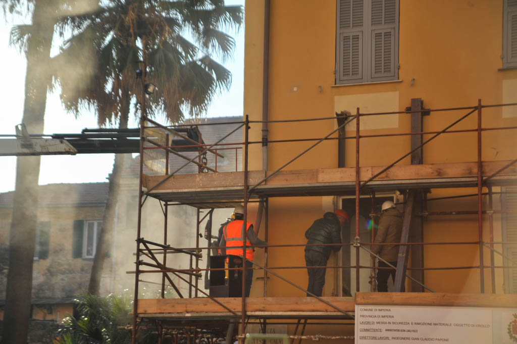 Si sono tenuti questa mattina, così come annunciato nei giorni scorsi, i lavori di messa in sicurezza dell’edificio di via del Collegio distrutto dall’attentato incendiario del 2 novembre scorso. A causa dell’intervento, iniziato intorno alle ore 7 e terminato poco dopo l’ora di pranzo, sono rimaste chiuse al traffico piazza Ulisse Calvi e via Palestro. Presenti sul posto, oltre agli operai della ditta incaricata della realizzazione dei lavori, gli agenti della Polizia Scientifica e i volontari della Protezione Civile. Nel dettaglio, l’intervento è consistito nella demolizione del pavimento, parzialmente distrutto dall’esplosione del centro scommesse, all’interno dell’appartamento al primo piano di via del Collegio.