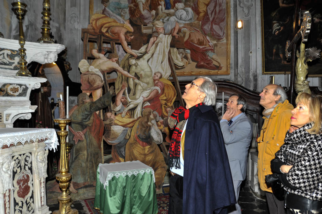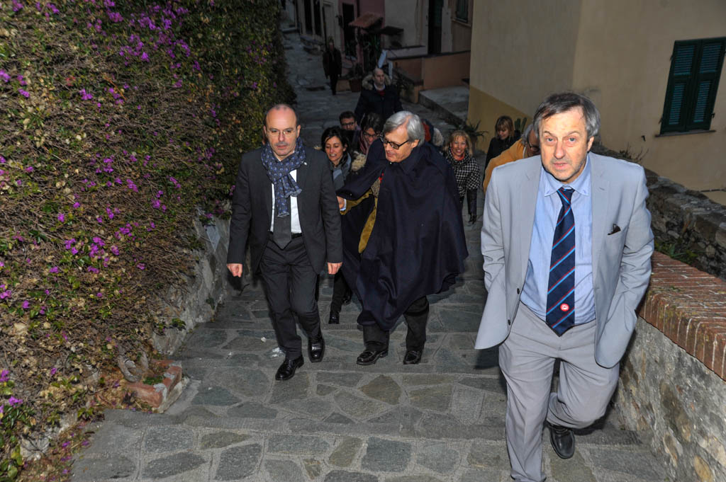 Terminata la visita sul porto, Sgarbi si è recato al Parasio per visitare la chiesa di San Pietro, il santuario delle Grazie e la Casa di Napoleone.