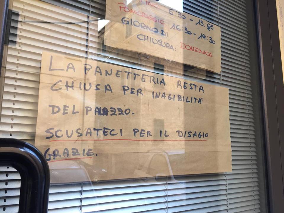 “L’ing. Rebuttato – tuonano i gestori del panificio e gli inquilini – non risponde al telefono. Ci avevano assicurato che entro la metà di gennaio saremo potuti rientrare nei nostri appartamenti e nelle nostre attività commerciali ma nessuno si vuole prendere la responsabilità. La nostra panetteria non ha lesioni e i vigili del fuoco ci avevano detto che saremo potuti rientrare. Fortunatamente abbiamo il forno di fronte e abbiamo allestito un piccolo punto vendita ma abbiamo dovuto lasciare una persona a casa senza contare che abbiamo perso un mese di lavoro. Inoltre per aprire qua abbiamo dovuto pagare 650 euro e il giro di affari è calato drasticamente senza contare che non possiamo entrare nel negozio dove ci sono prodotti che stanno andando in scadenza o che sono già scaduti. La lavanderia ha chiuso e probabilmente non riaprirà più e gli uffici che c’erano si sono dovuti spostare. Gli unici che ci hanno dato una mano è il personale dell’Asl e quello dell’ufficio licenze del comune, gli altri latitano”.