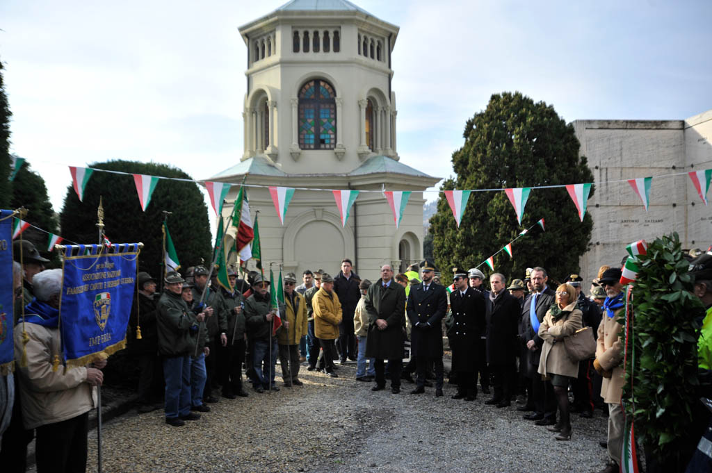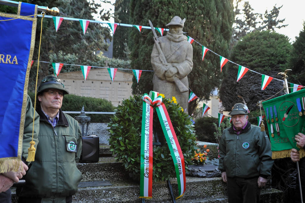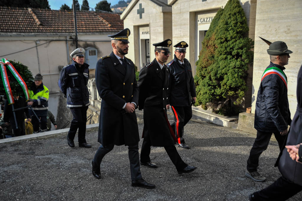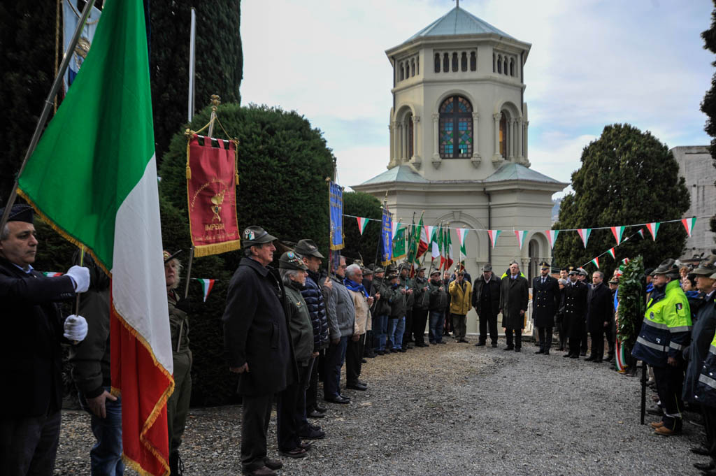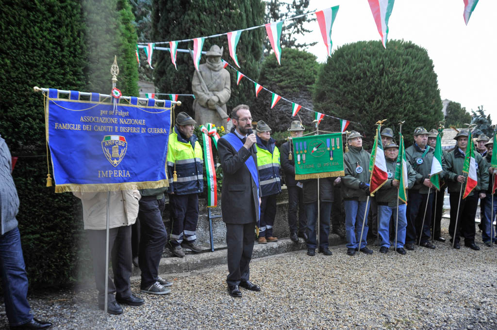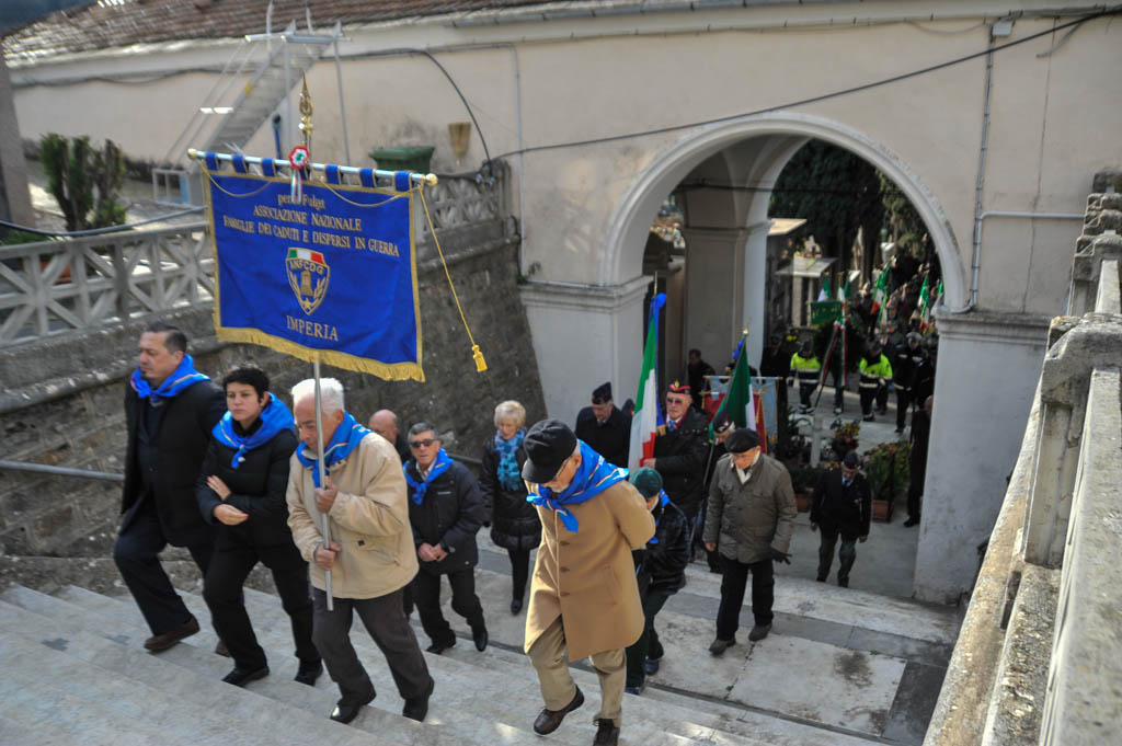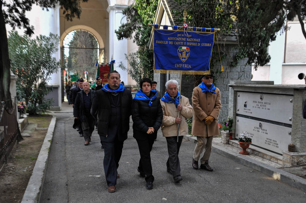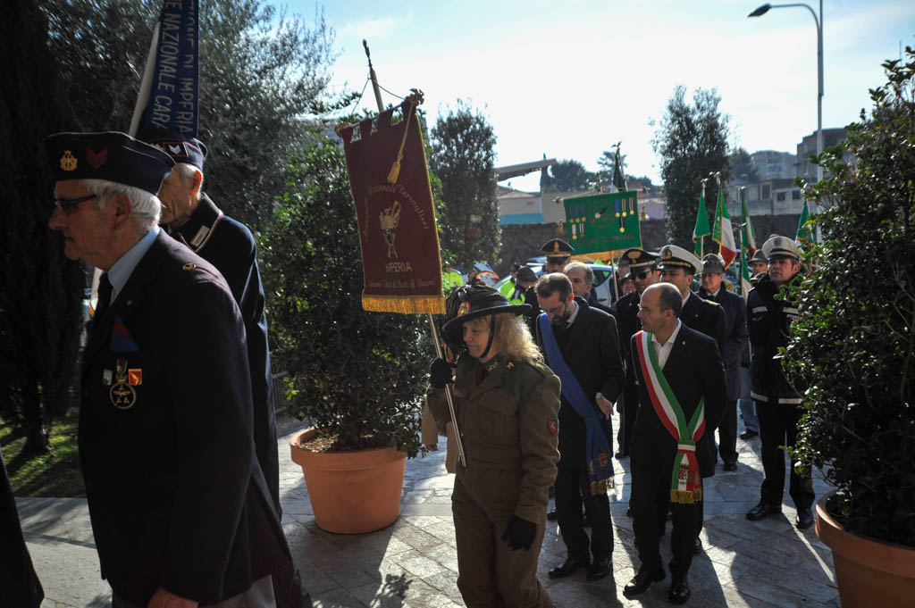 Successivamente è stata la volta della tradizionale deposizione di corone di alloro e della resa degli onori alla “Tomba Simbolica” dedicata ai Caduti e dispersi durante la campagna di Russia. A seguire ha preso la parola il Cav. Francesco Verrando, presidente del Comitato Provinciale della A.N.F.C.D.G. Di Imperia. Terminato l’intervento si è formato il corteo che ha raggiunto la chiesa Parrocchiale “Sacra Famiglia” in via Spontone, per la Santa Messa celebrata da Don Paolo Pozzoli con la partecipazione del Coro Alpino”Monte Saccarello” della Sezione A.N.A. Di Imperia e della Fanfara Alpina“Colle di Nava”.