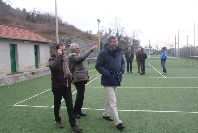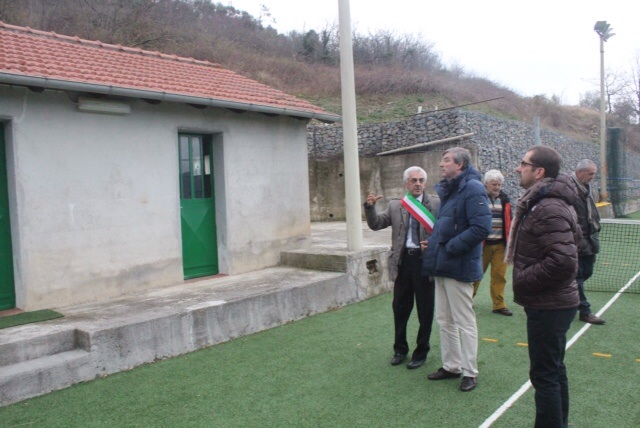 “Oggi siamo stati a Soldano dov’è stata inaugurata una bellissima piazza, nel centro storico, dedicata al vino Rossese, realizzata grazie ai finanziamenti psr (piano sviluppo rurale). Qui ad Aquila abbiamo visitato il campo da calcetto e tennis che abbiamo finanziato per il 25% del costo. Il Sindaco mi ha fatto richiesta di ulteriori fondi per realizzare gli spogliatoi, vedremo cosa riusciamo a fare. Abbiamo poi fatto visita al ponte che collega le borgate di Mugno e Salino. La Regione ha finanziato il consolidamento del ponte con 40 mila euro e gli altri 20 mila li ha messi il Comune di Aquila d’Arroscia“.