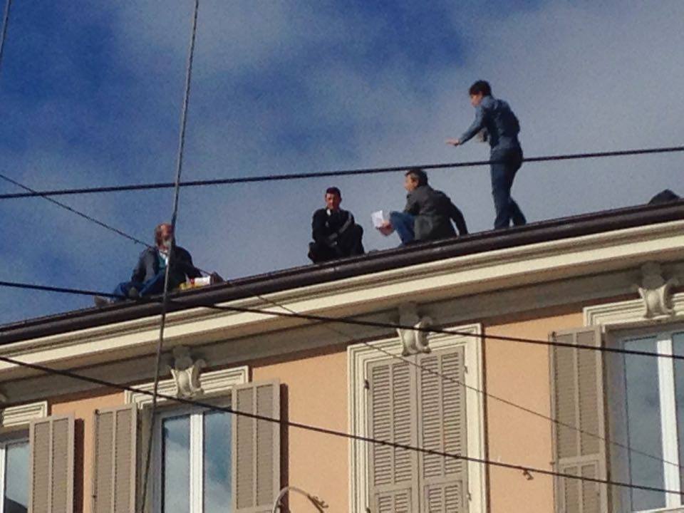 Sanremo – Grazie alla prontezza degli uomini delle forze dell`ordine è stato tratto in salvo l’uomo, che pochi minuti fa è salito sul tetto di un palazzo di Piazza Colombo a Sanremo minacciando di buttarsi nel vuoto. Una volta arrivati i vigili del fuoco e i giornalisti Rai, richiesti dall’uomo, sul tetto, il sessantenne senza fissa dimora, che avrebbe tentato l’insano gesto già alcuni anni fa, è stato immobilizzato e trascinato lontano dal vuoto. C’è stata una breve collutazione ma nessuno sarebbe rimasto ferito. All’origine del gesto una protesta per un’operazione medica finita male. L’uomo ha chiesto di parlare con l’attore Gabriele Garko, poi è stato portato via dai Carabinieri.