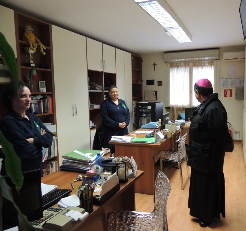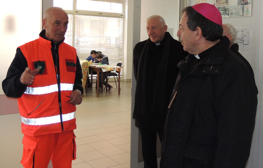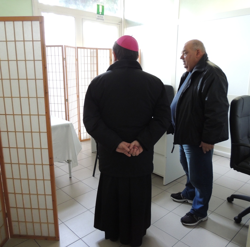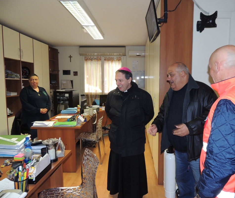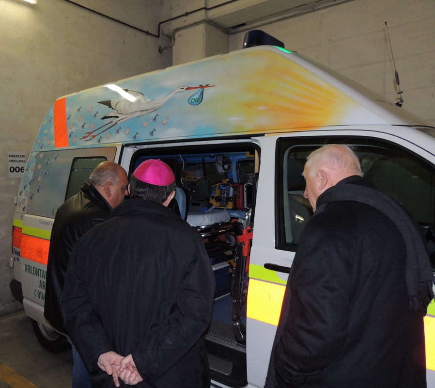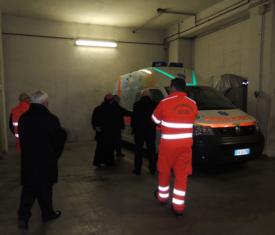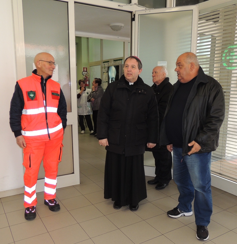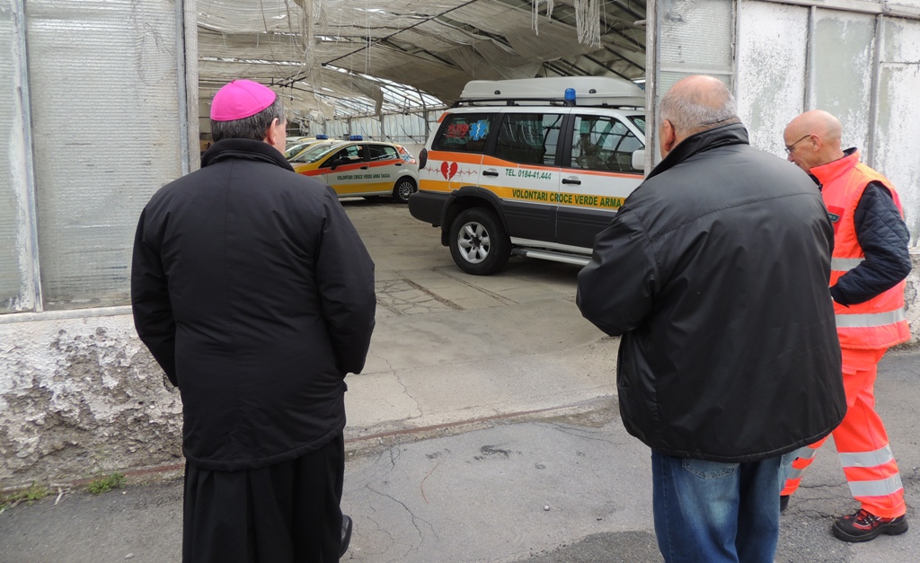 Accompagnato da Don Benito Cagnin e da Don Enrico Molineris, il Vescovo é stato accolto dal Presidente Antonio Pizzolla e da alcuni dei volontari che quotidianamente prestano servizio per la pubblica assistenza. A Monsignor Suetta é stata illustrata la storia della Croce Verde, l’attività dell’associazione e i servizi che vengono svolti dal personale.