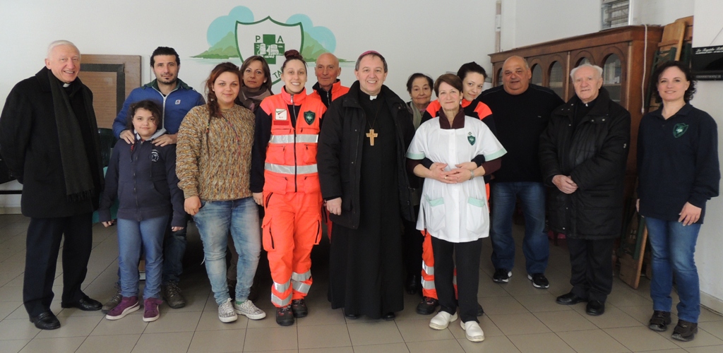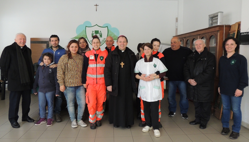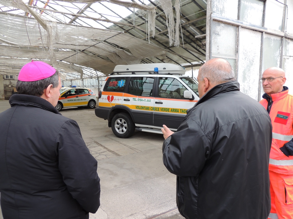 Monsignor Antonio Suetta, Vescovo della Diocesi Ventimiglia-Sanremo, nel corso della visita pastorale, che proseguirà fino a domenica sul territorio comunale, ha incontrato in mattinata, i militi della Croce Verde Arma Taggia.
