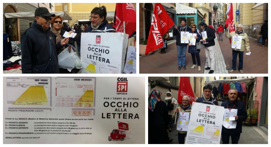 “È una campagna di informazione – spiega Revello – che portiamo avanti in tutti i mercati della provincia di Imperia, oggi abbiamo iniziato con il mercato di Oneglia, Noi vogliamo ricordare a tutte le persone, non solo agli iscritti dello SPI CGIL, che quando vanno dal loro medico di famiglia, quando gli prescrive un esame o una visita specialistica devono sempre chiedere qual’è la lettera che lui appone sulla ricetta. Perché è la lettera che comanda i tempi di attesa. Perché se il vostro medico digita o scrive o barra la lettera U (urgente) vuol dire che voi l’esame o la visita la fate in 48h. Se mette la B (breve) vuol dire che lo farete in 10 giorni, se mette la lettera D, se è una visita specialistica in 30 giorni se è un esame strumentale in 60. Se mette la lettera P( programmabile) lo fate in 3/4/5 mesi o 7 mesi in base ai tempi di attesa di quel tipo di esame, se non barra nessuna lettera il sistema prende in automatico la P. Quindi ogni volta che uscite dal vostro medico di famiglia dovete chiedergli la lettera che ha barrato, perché io lo ricordo sempre a tutti: il nostro medico di famiglia conosce molto bene la vostra situazione clinica, la salute vostra e della vostra famiglia ed è l’unica persona che sa quando , come, dovete fare esami e accertamenti diagnostici”.