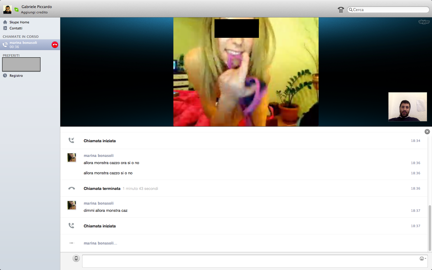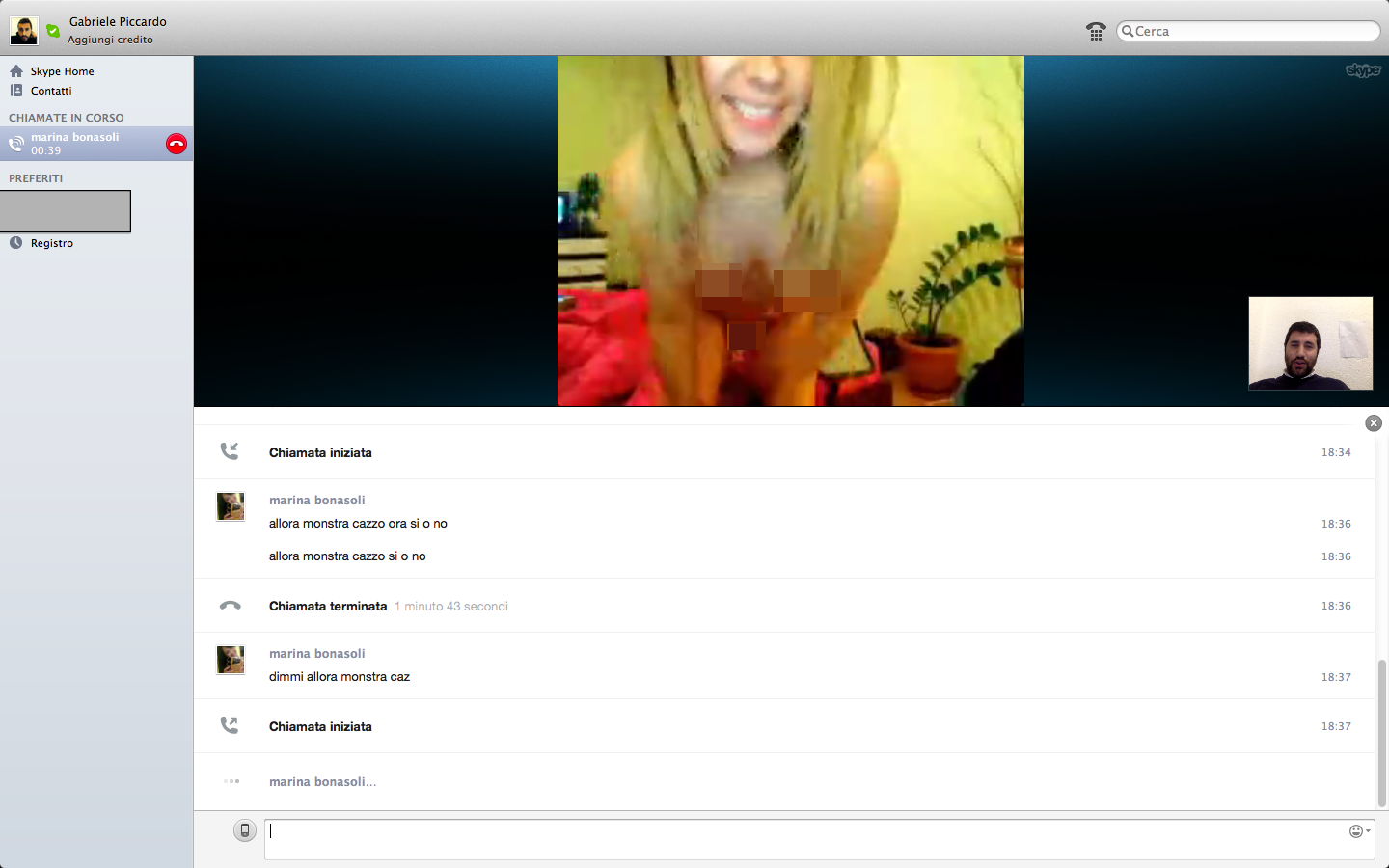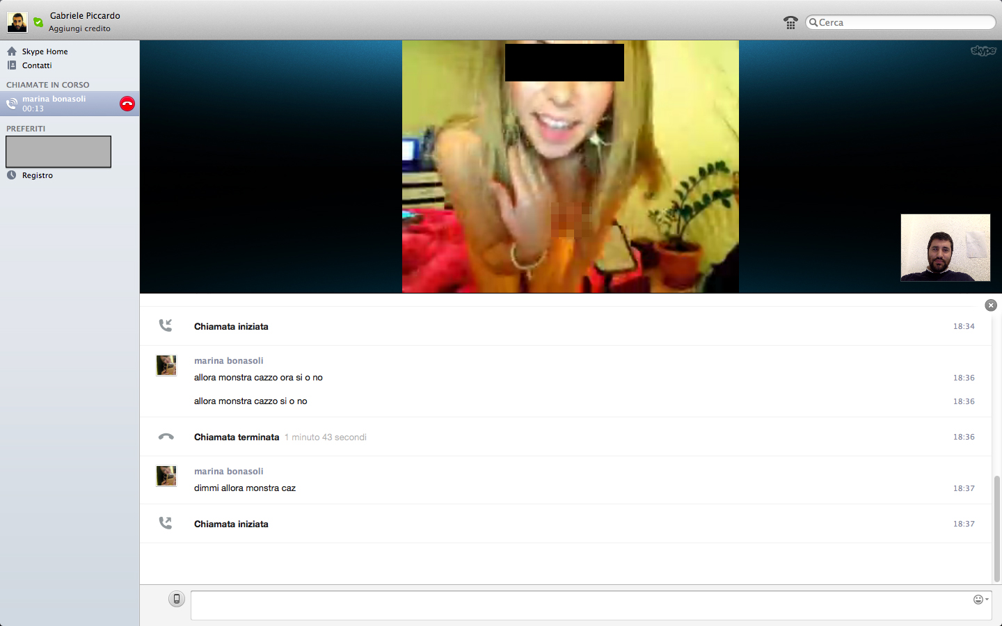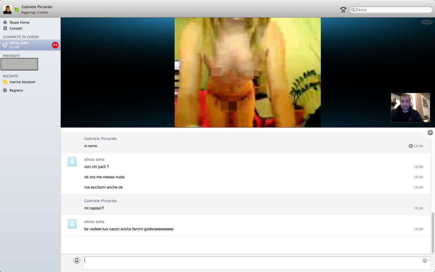Abbiamo dunque deciso di accettare l’amicizia per capire cosa volesse. Da subito inizia uno scambio di battute, poi, dopo aver assunto qualche informazione sulla situazione sentimentale (single, fidanzato, sposato, divorziato), arriva la richiesta impellente di scambiarsi i contatti Skype per iniziare una videochat a dir poco osè.