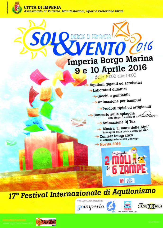 L’Assessorato al Turismo, Manifestazioni, Sport e Protezione Civile della Città di Imperia organizza in collaborazione con la ditta Espansione di Paola Savella la 17° edizione di “Sol&vento – energia di primavera” sabato 9 e domenica 10 aprile 2016 .