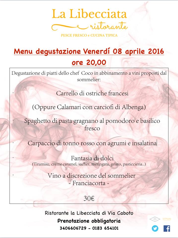 Ristorante La Libecciata Via Caboto Imperia – Porto Maurizio Tel . 0183 654101 – 3406606729