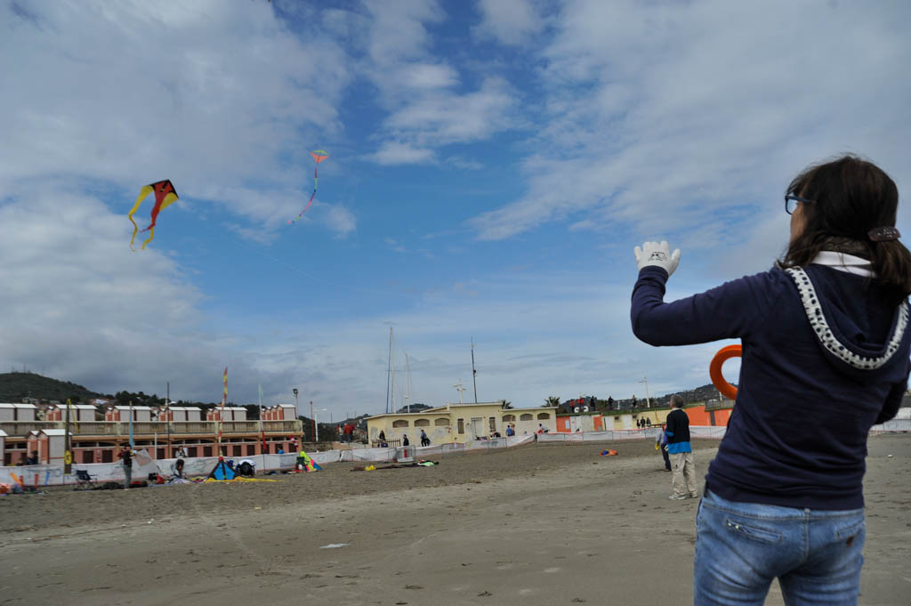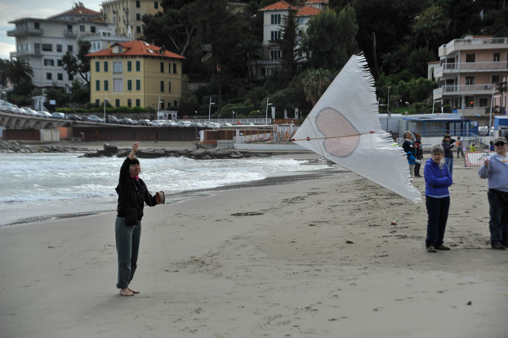 Imperia – “È appena cominciata la 17° edizione di Sol&vento Energia di primavera – spiega Paola Savella – manifestazione che apre le manifestazioni estive del Comune di Imperia. Siamo pronti per accogliere i cittadini imperiesi e i turisti per questa manifestazione. Hanno cominciato già a volare i primi aquiloni in questo momento sono in volo le farfalle dei “Carpe Diem” il gruppo svizzero, fra poco salirà in cielo il bellissimo nuovo progetto di Arnaldo Mazzetto che è questa grossa ruota di quattro metri di diametro che rappresenta un volto di donna di Milo Manara, sono pronti anche il geco, le piovre e i pescioloni dell’ospite d’onore di quest’anno che è il gruppo dei Rate Voloire.