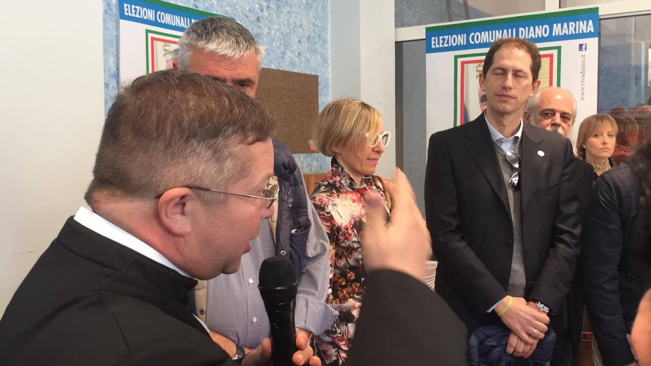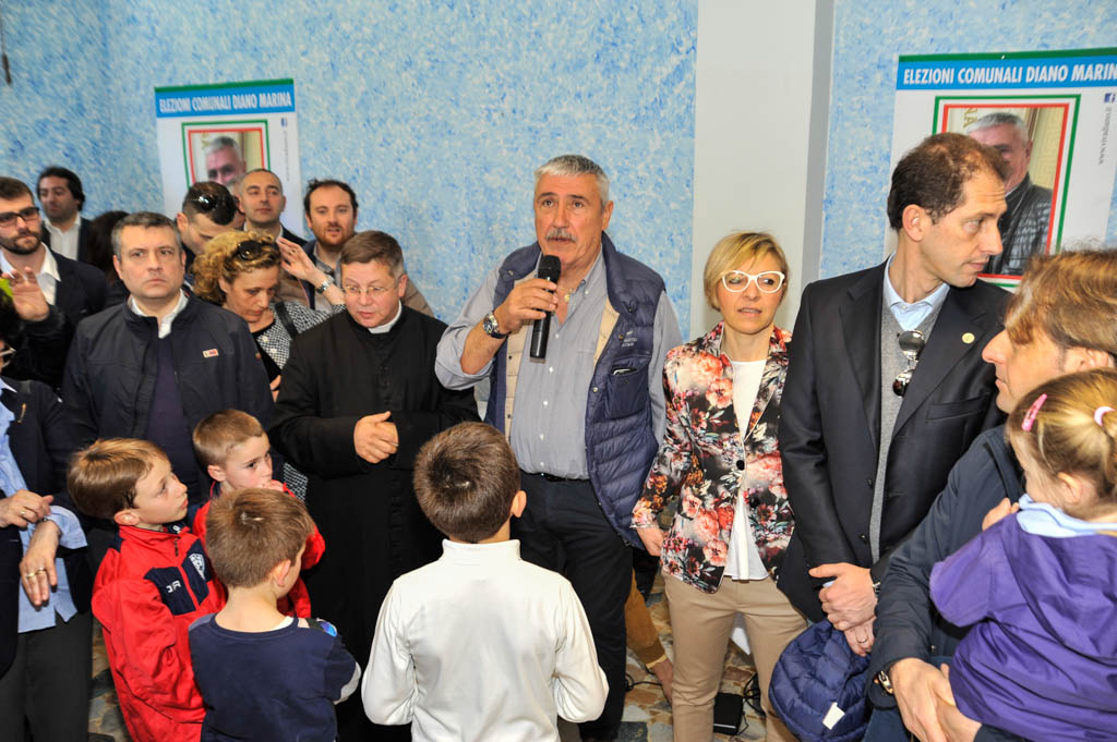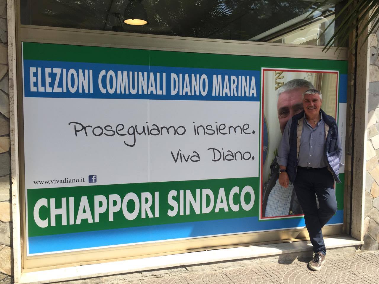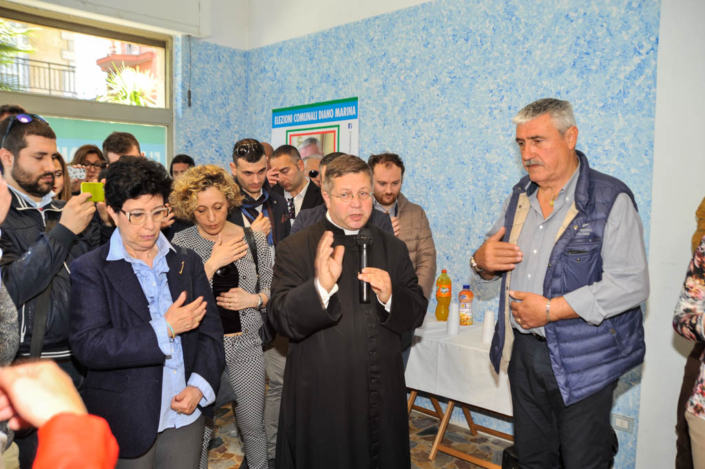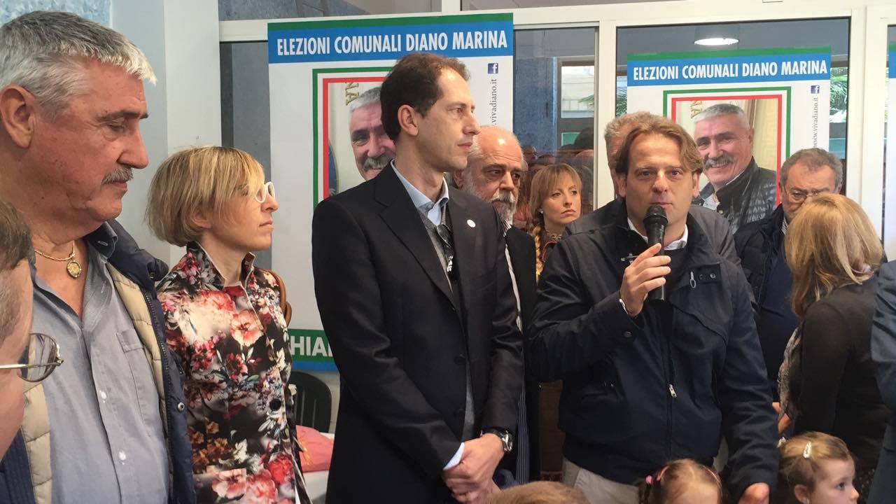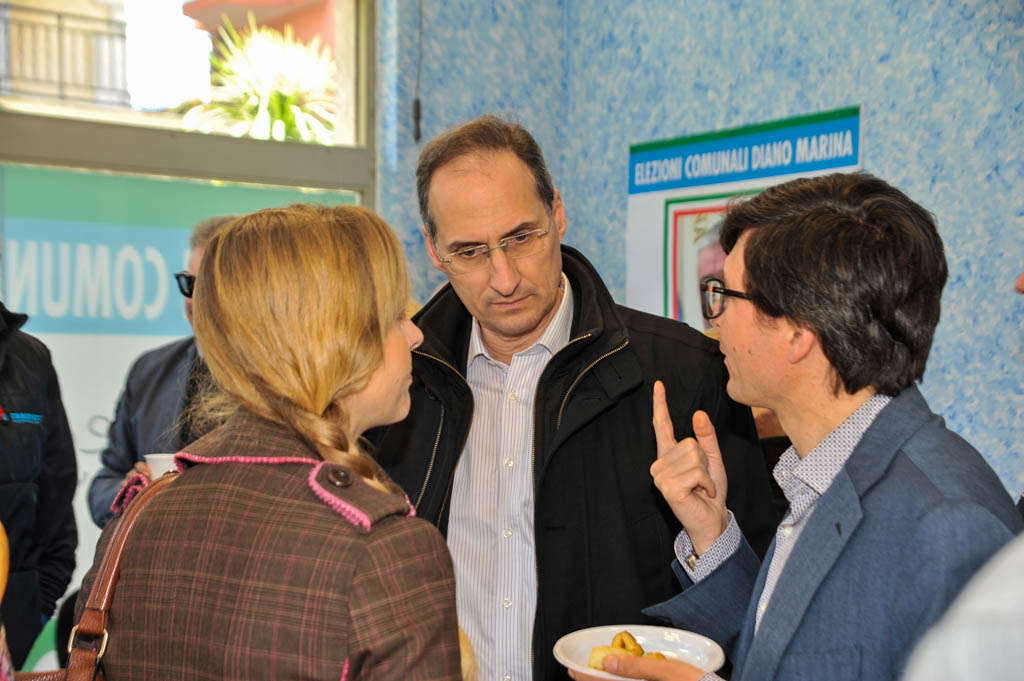 DIANO MARINA – “La lista è pronta, useremo questi 25 giorni per mettere a punto il programma. Non temo nessuno “. Parole del sindaco Giacomo Chiappori che questa mattina ha dato il via alla campagna elettorale delle città degli aranci. Inaugurato il point elettorale all’angolo tra via Biancheri e via Petrarca alla presenza di tutti i candidati e degli esponenti dei tre partiti che appoggiano la lista civica “Viva Diano”. Per la Lega Nord ha fatto una toccata e fuga il presidente del Consiglio regionale Francesco Bruzzone, in rappresentanza di Forza Italia l’assessore regionale e commissario provinciale del partito Marco Scajola e per Fratelli d’Italia il portavoce provinciale Fabrizio Cravero. A dare la benedizione al point, l’aveva fatto anche nel 2011, Don Luca Parachini.