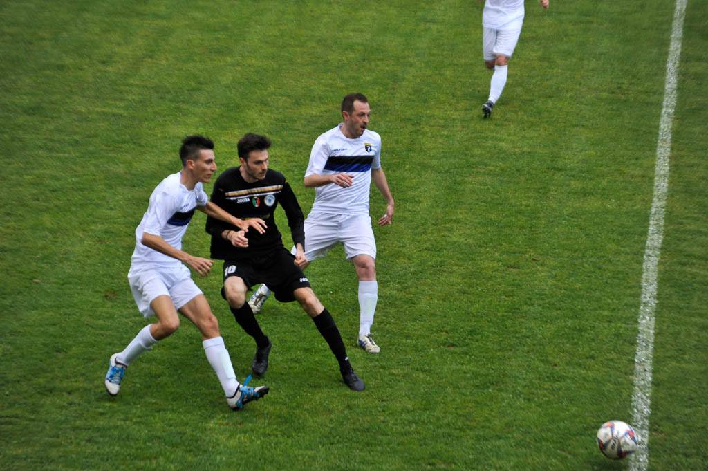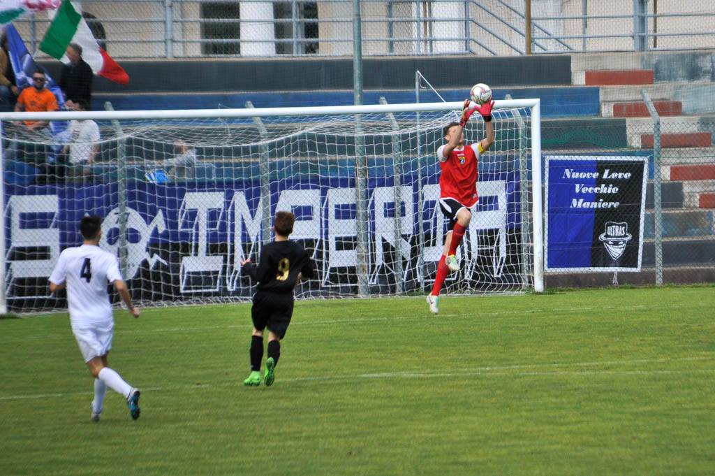 L‘arbitro Federico Tassano di Chiavari indica il dischetto di rigore nell’incredulità dei giocatori e dei 100 spettatori sulle tribune. Un minuto più tardi , al 40′, Maggiore trasforma il penalty facendo schiantare la palla contro la traversa e poi in rete. Nel secondo tempo il portiere Alessandro Trucco salva l’Imperia ben due volte dalle incursioni del numero 8 Lunghi al 59′ e all’85’. Da registrare anche l’infortunio di Dominici che atterrando da uno stacco si è procurato la distorsione del ginocchio destro. Il gioco viene interrotto per circa 10 minuti al fine di permettere i soccorsi da parte dei militi della Croce Rossa.